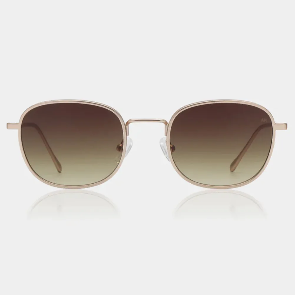 Farve: Matte Gold / UV 400 Beskyttelse / Polykarbonat linser / Højkvalitets optiske hængsler / Rengøringspose inkluderet / Mere end 50% genanvendte materialer