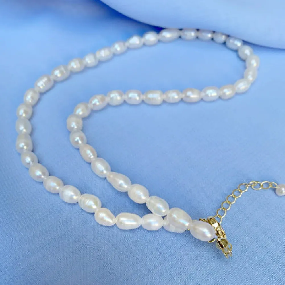 Materiale: 18 karat forgyldt messing og ægte ferskvandsperler. /Længde: 37-42,5 cm