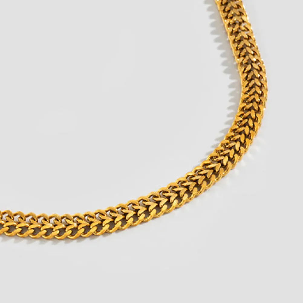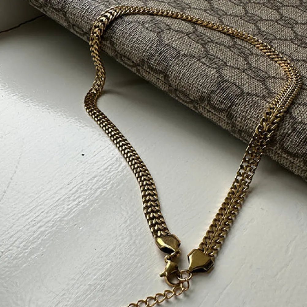 Materiale: Stainless steel guldbelagt med 18 karat / Kæde 40 cm plus justerbart led på 7 ekstra cm. / Nikkelfri