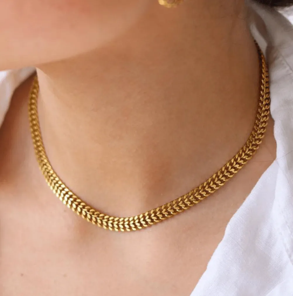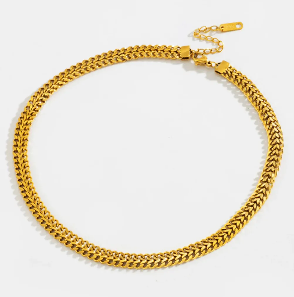 Materiale: Stainless steel guldbelagt med 18 karat. / Kæde 40 cm plus justerbart led på 7 ekstra cm.