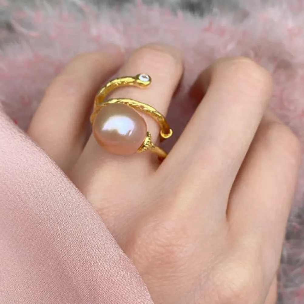 Smuk og rustik ring med den smukkeste rosa perle og lys zirkon fra And Copenhagen.