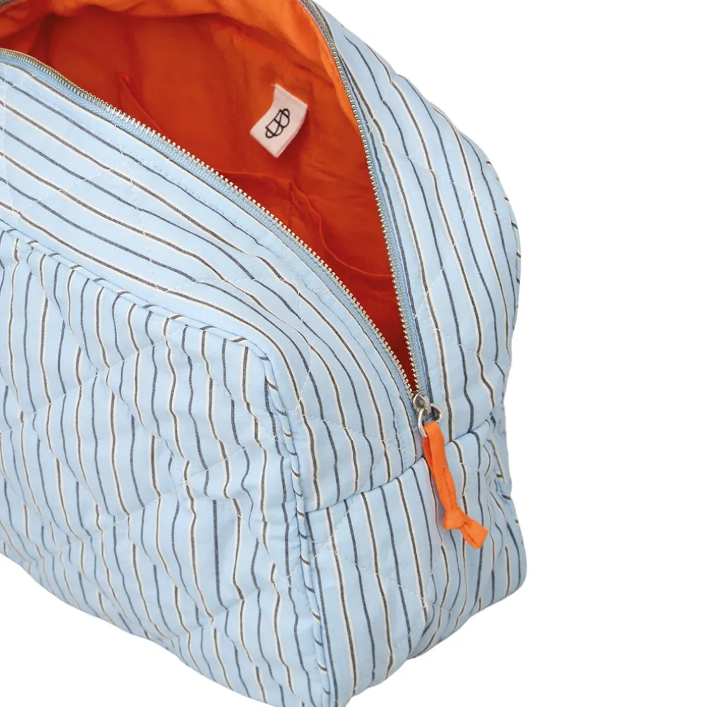 Smuk lille toilettaske eller kosmetikpung fra Beck Söndergaard med fine striber, lynlås og små indvendige lommer.