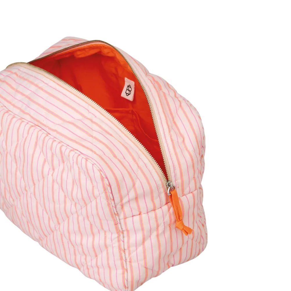 Smuk lille toilettaske eller kosmetikpung fra Beck Söndergaard med fine striber, lynlås og små indvendige lommer.