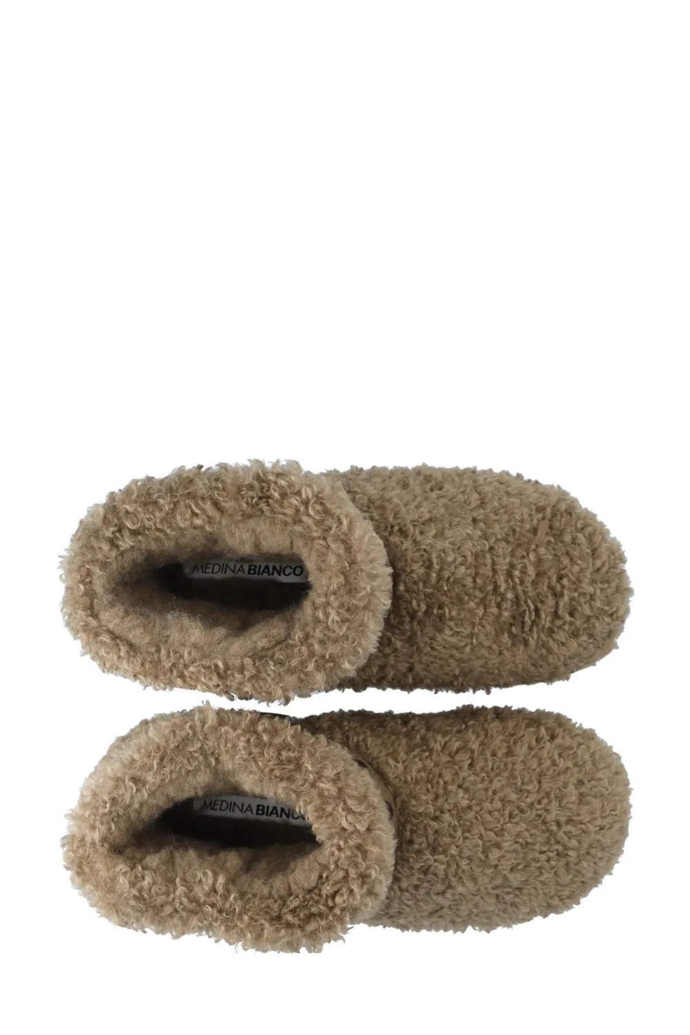 Lækre ankel bamsestøvler fra Bianco Medina kollektionen. Lavet i blød teddyplus med remme og nitter. Med platformsåle.