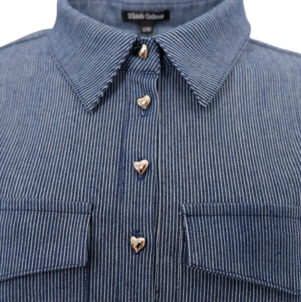 Flot a-formet denimkjole fra Black Colour med fine små hjerteknapper. Designet i en løs pasform.