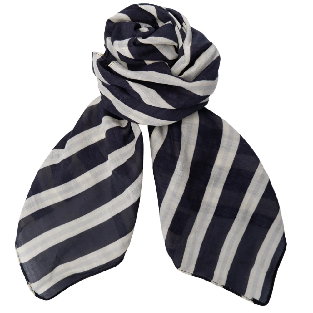 Fint stribet mini tørklæde fra Black Colour lavet i en blød bomuld-silke blanding.