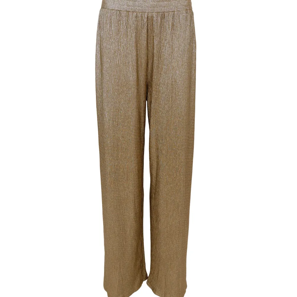Smukke løse guldfarvede bukser fra Black Colour med elastik i taljen. Perfekte til både hverdag og fest.