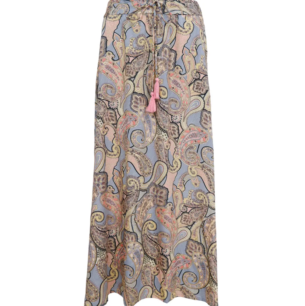 Flot lang boheme-nederdel fra Black Colour med flot mønster og fint bindebånd i taljen med kvaster.