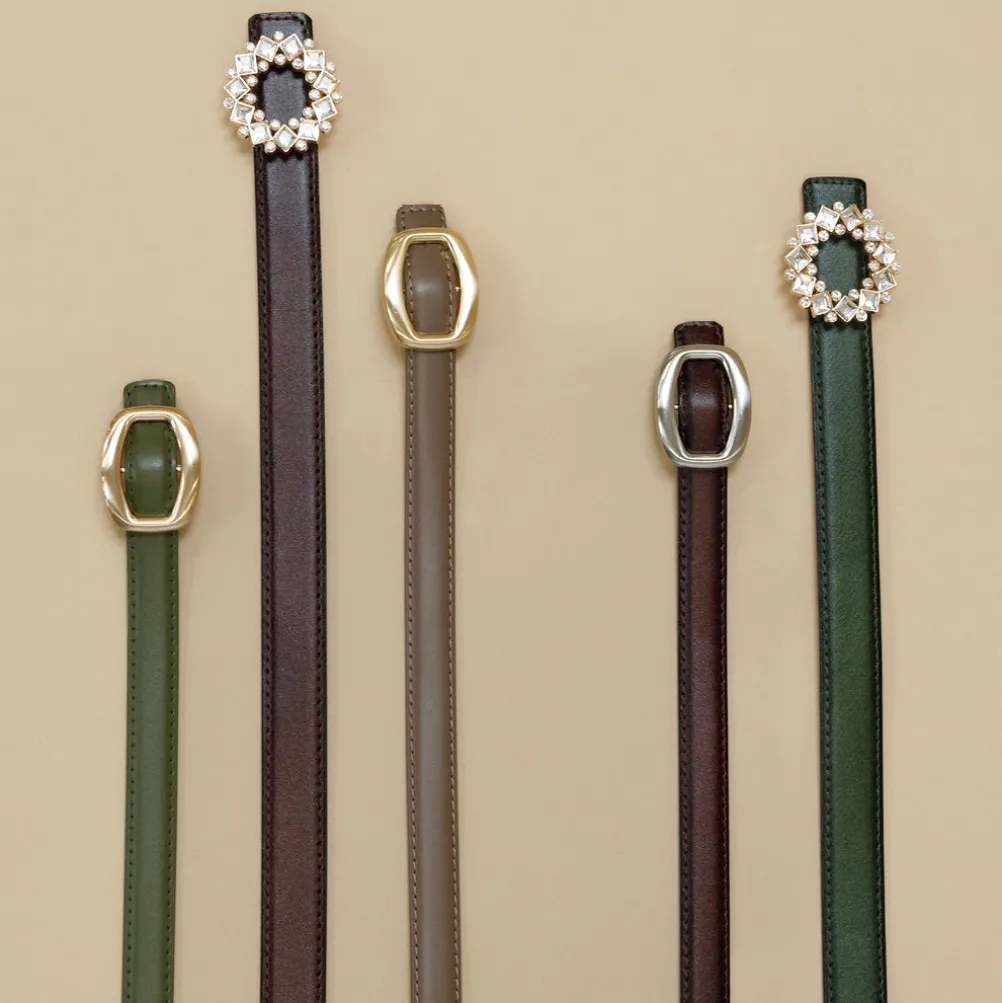 Smukt smalt læderbælte med flot guldspænde fra Black Colour.