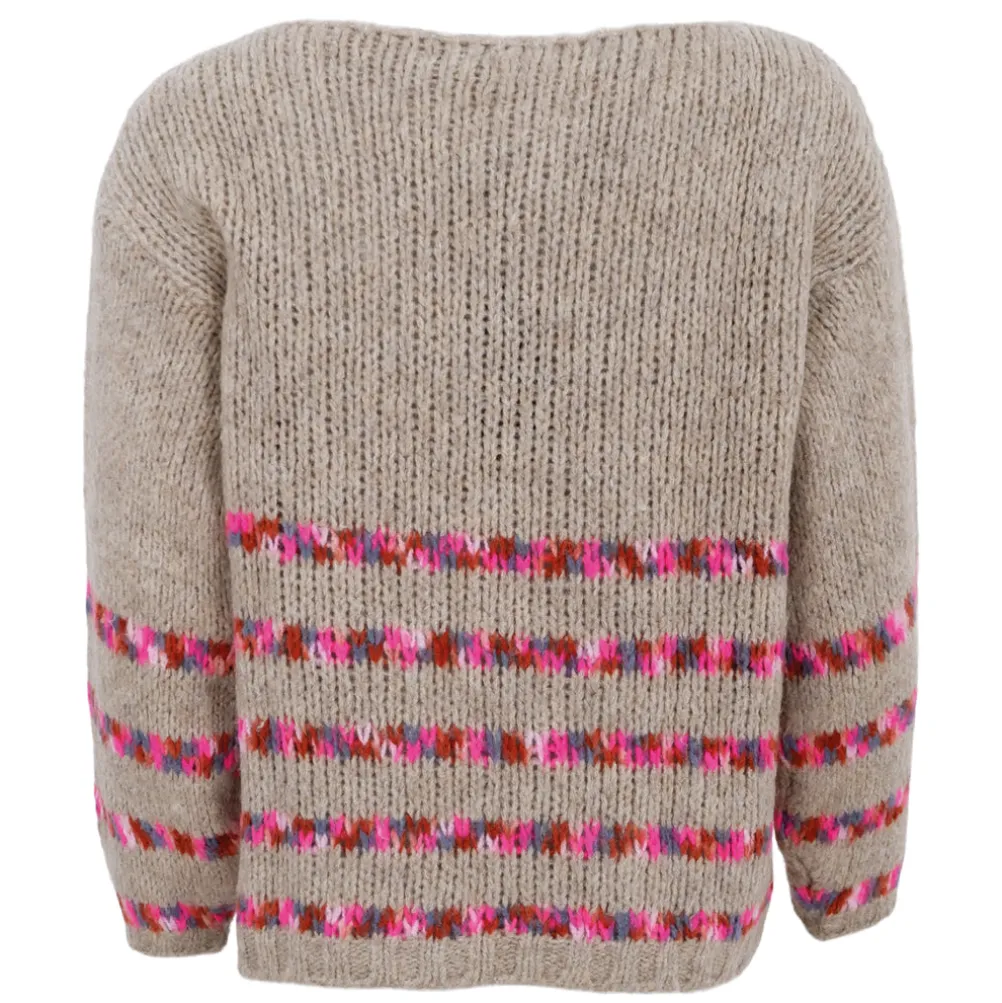 Lækker strik med multifarvede striber fra Black Colour. Lavet i en dejlig uldblanding.