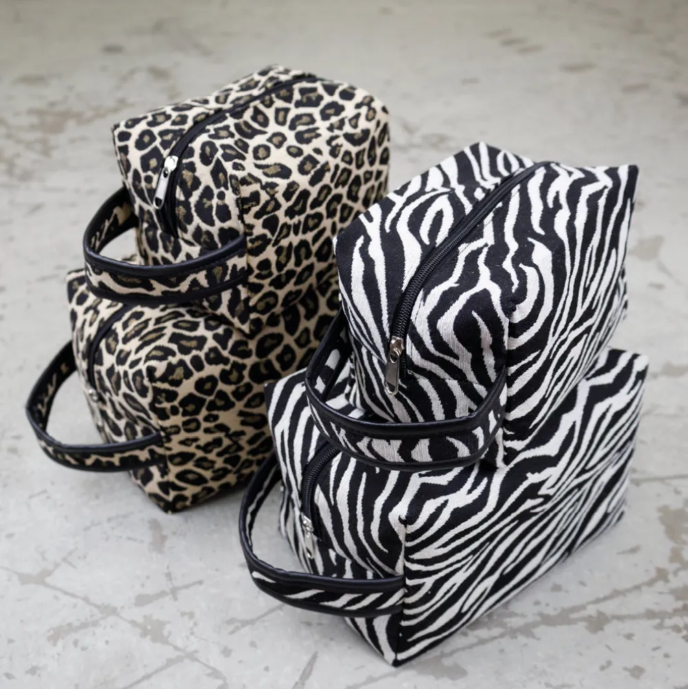 Flot makeuptaske med leopardprint fra Black Colour. Lukkes med lynlås og med en hank i siden.