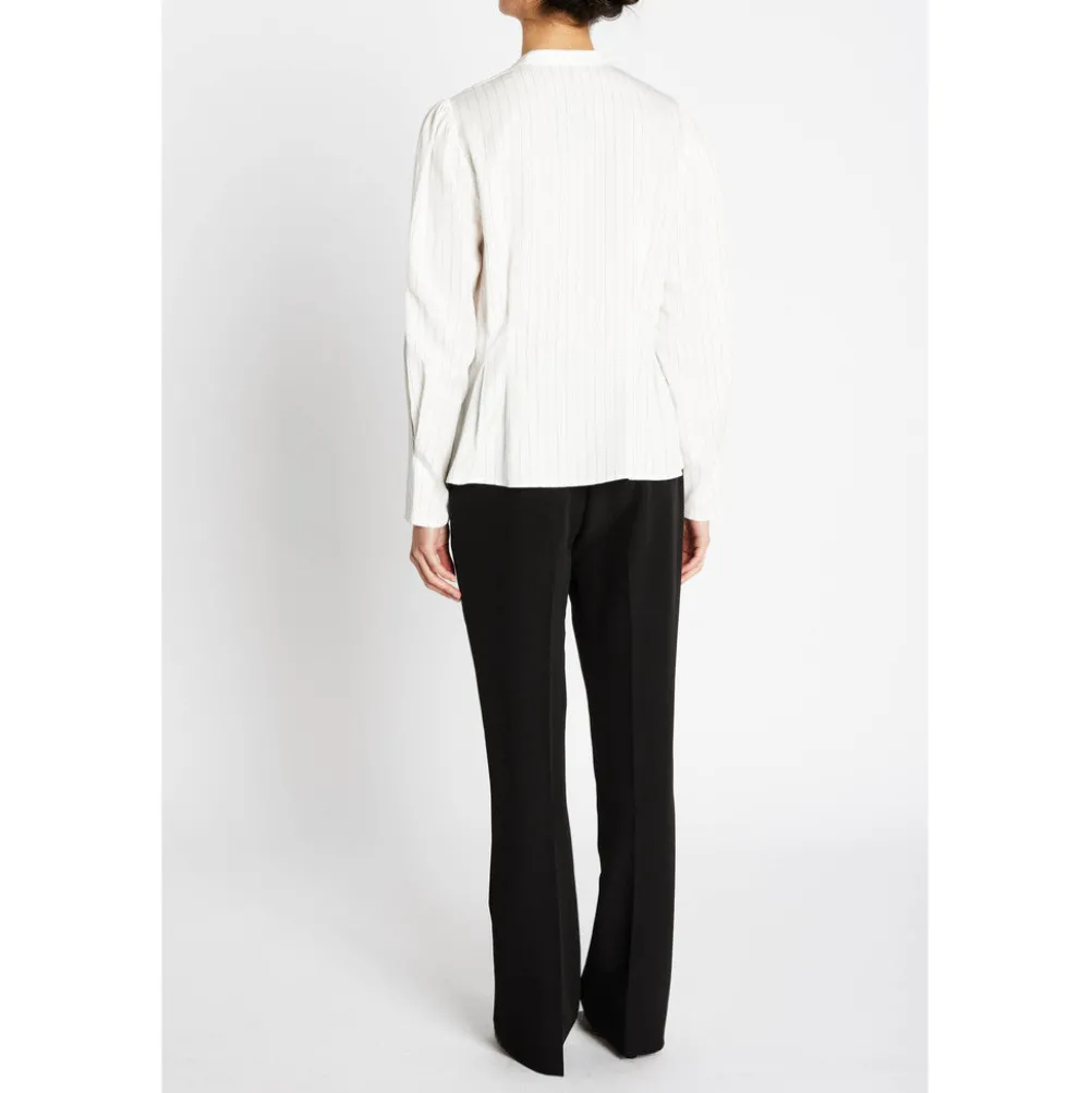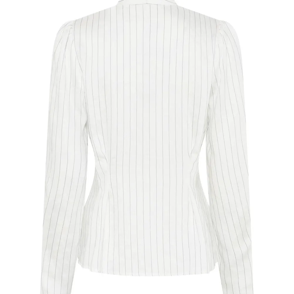 Elegant og klassisk nålestribet skjorte fra Bruuns Bazaar med lange ærmer, v-udskæring og indsnit i taljen. Perfekt både til hverdag og fest.