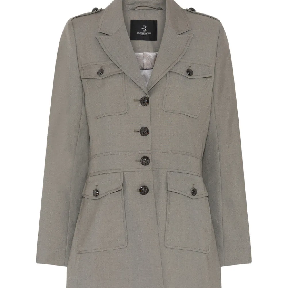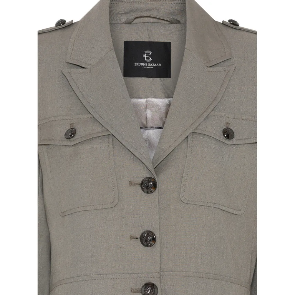 Elegant og cool jakke fra Bruuns Bazaar med mørke knapper og flere lommer foran. Med indsnit i taljen, som fremhæver taljen.