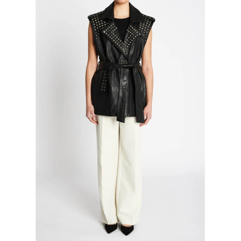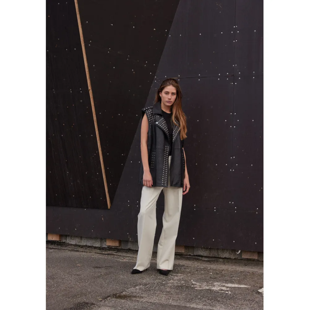Super lækker og eksklusiv lædervest fra Bruuns Bazaar med cool detaljer! Med små nitter, brede revers og bindebånd i taljen.