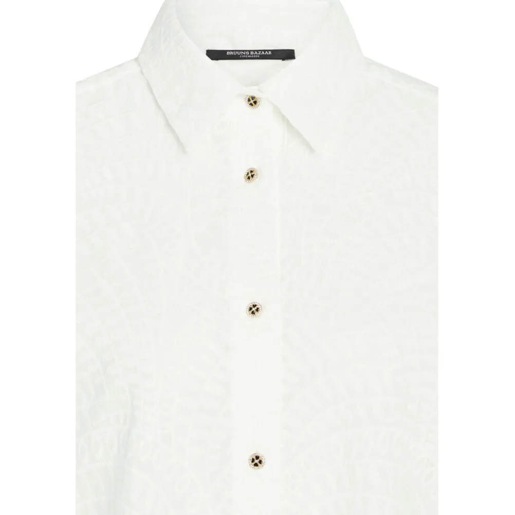 Smuk og elegant skjorte fra Bruuns Bazaar med det fineste diskrete mønster og de flotteste knapper! Med klassisk krave, lange ærmer og manchetter. Perfekt til både hverdag og fest.