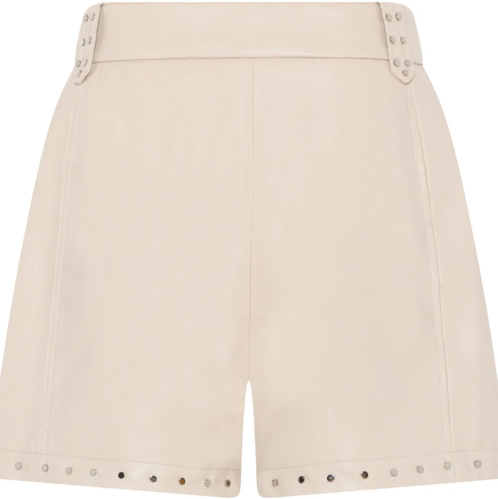 Elegante korte veganske lædershorts fra Bruuns Bazaar med fine nitter langs kanterne. Perfekte til både hverdag og fest.