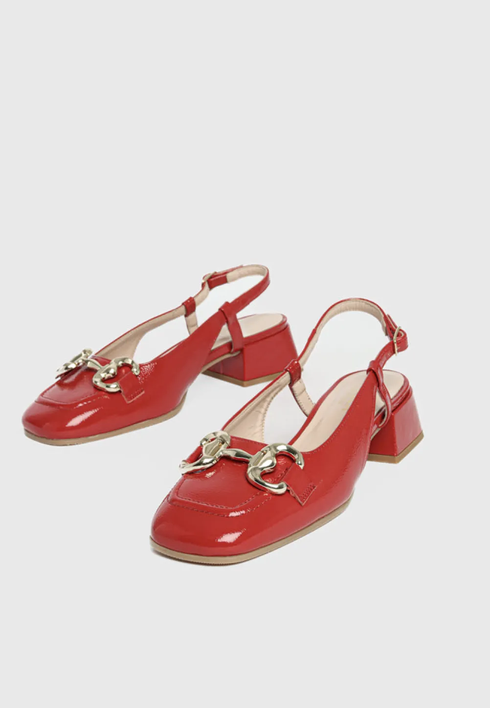 Super smukke røde sko fra Bukela med smukke detaljer. Med lille hæl og behagelig pasform. Et must til forårets og sommerens styles.