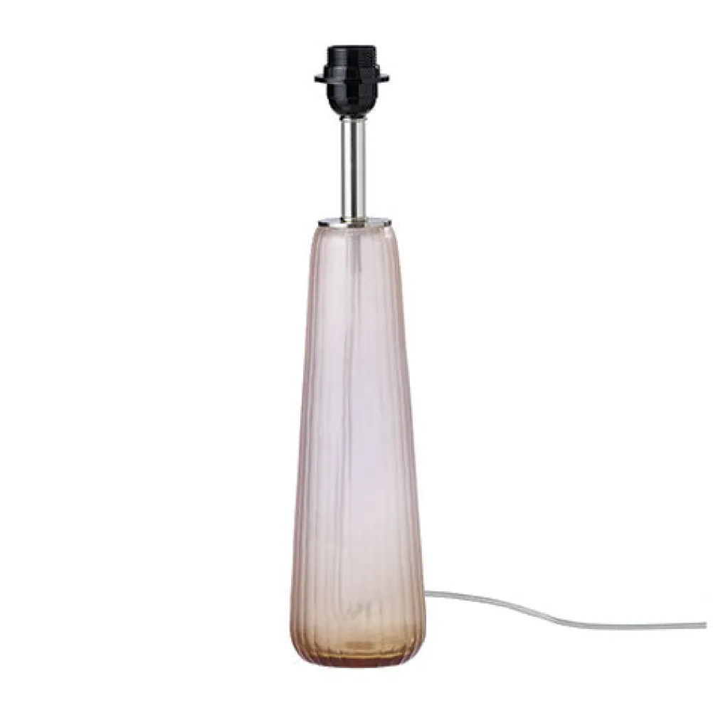 Smuk lampe fra Bungalow i røget lys rosa glas. Lampen er 35 cm høj. Lampen er uden skærm. Den er smuk og kan både have en ensfarvet eller printet skærm på.
