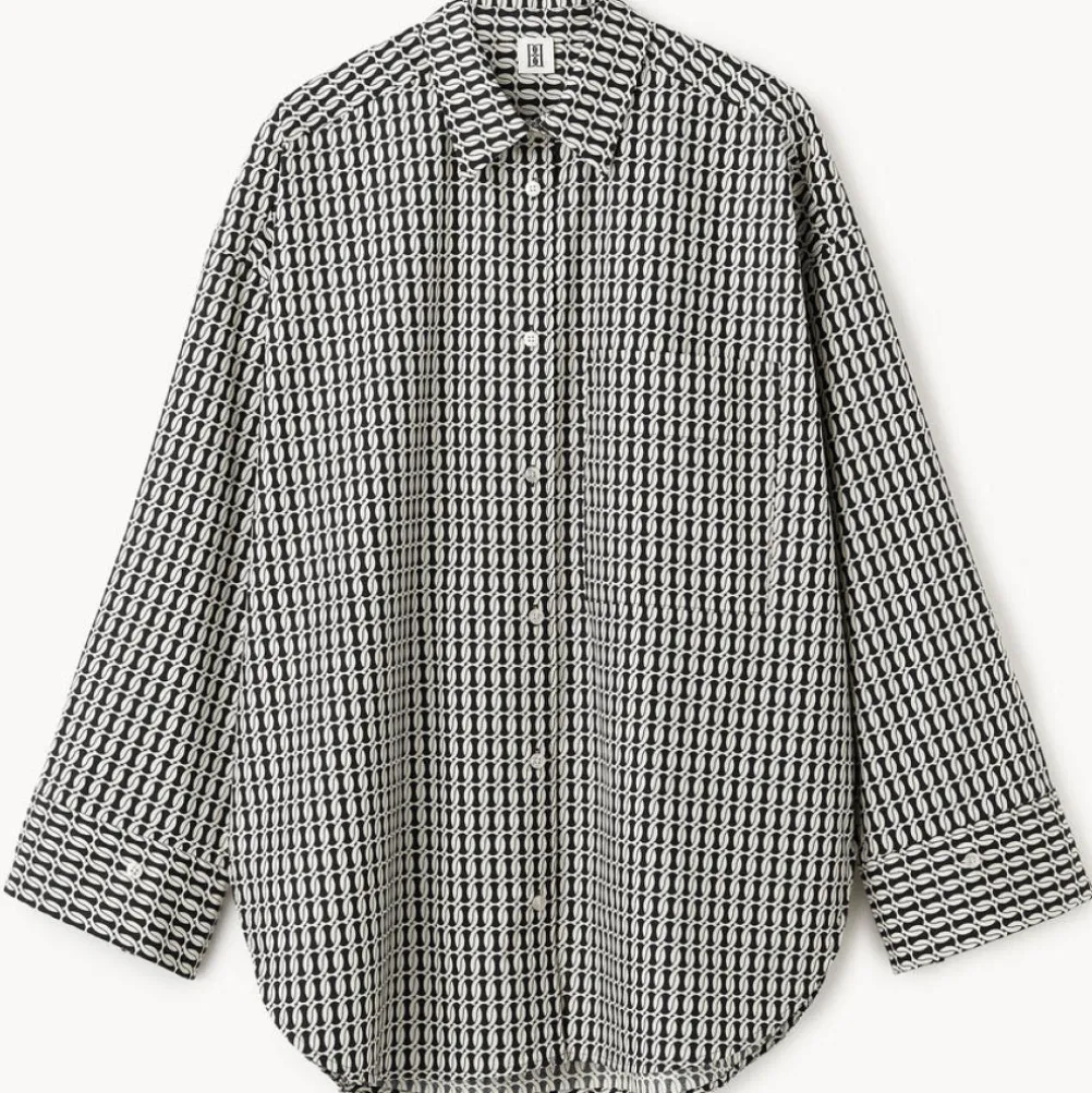 Smuk klassisk løs skorte med monogrammer fra By Malene Birger. Med skarp krave, frontlomme og knaplukning. Meget populær model.