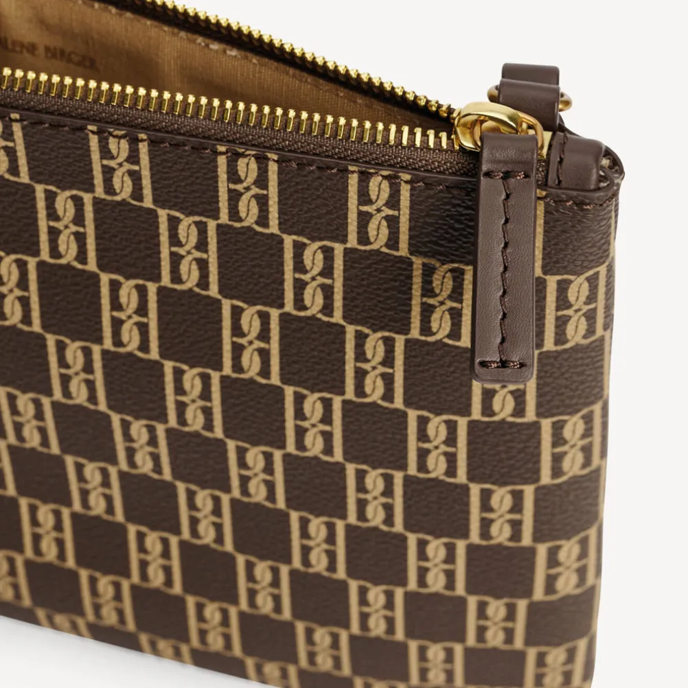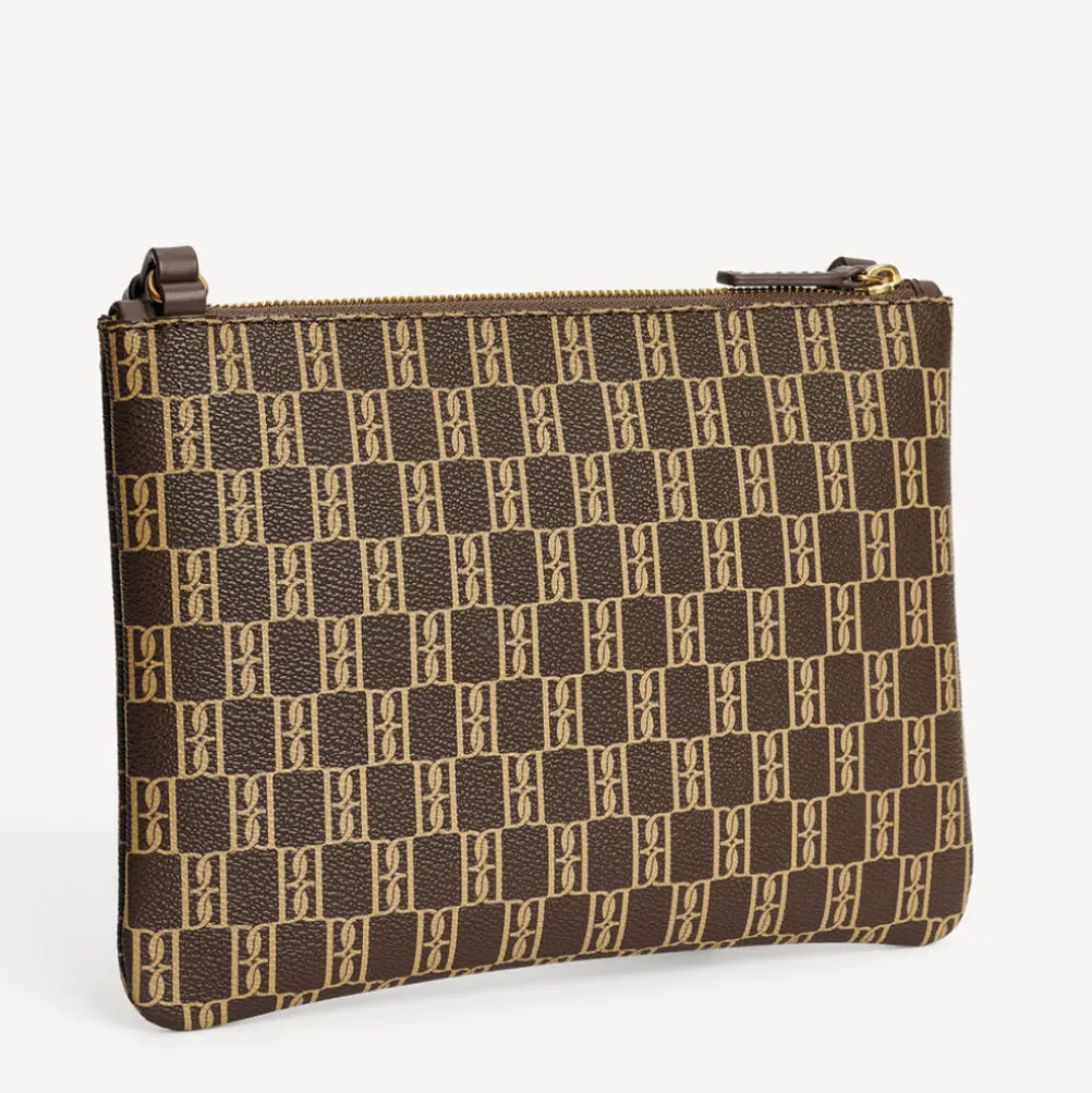 Smuk og elegant taske fra Malene Birger med deres monogrammotiv og justerbar aftagelig rem. Kan bruges som enten clutch eller crossbodytaske.