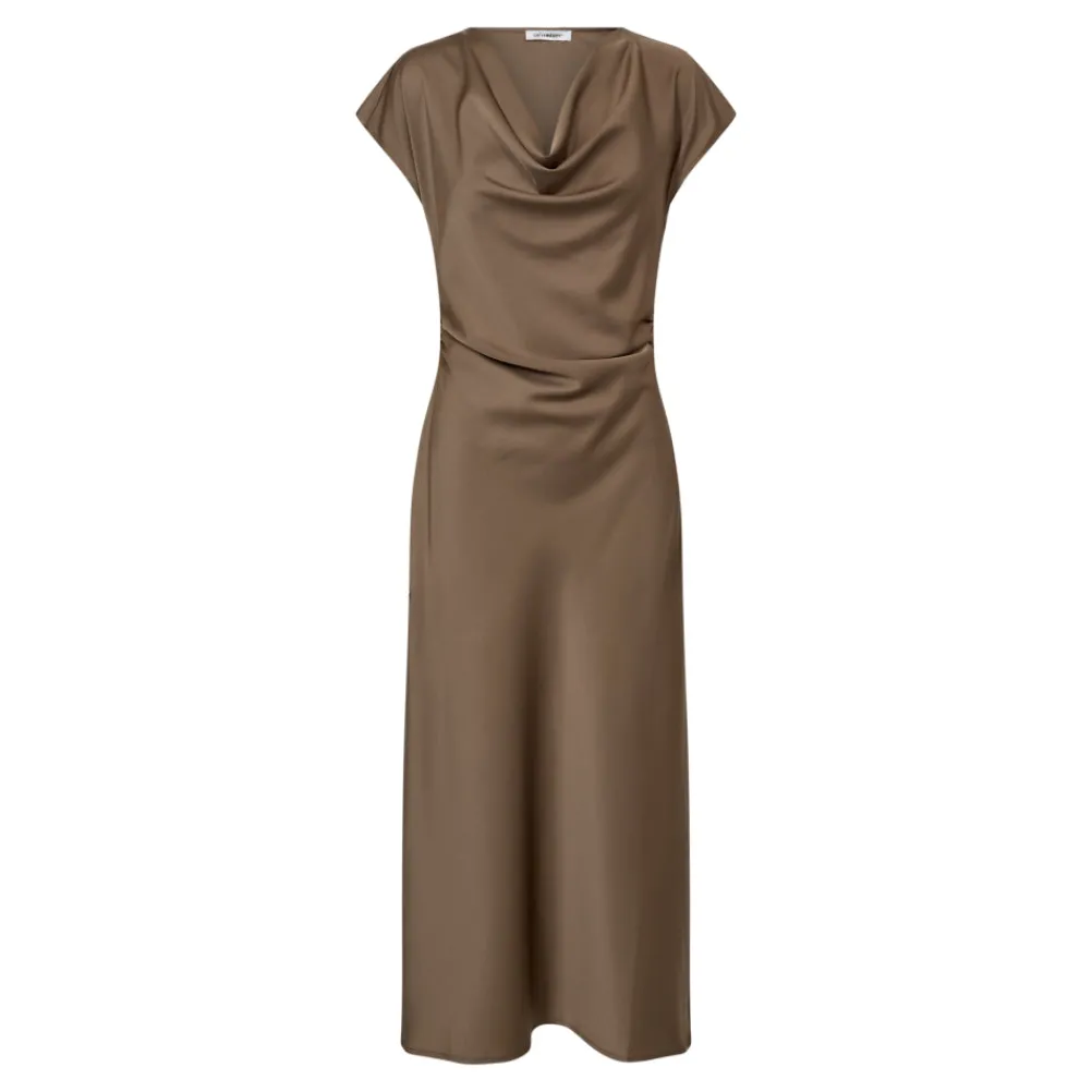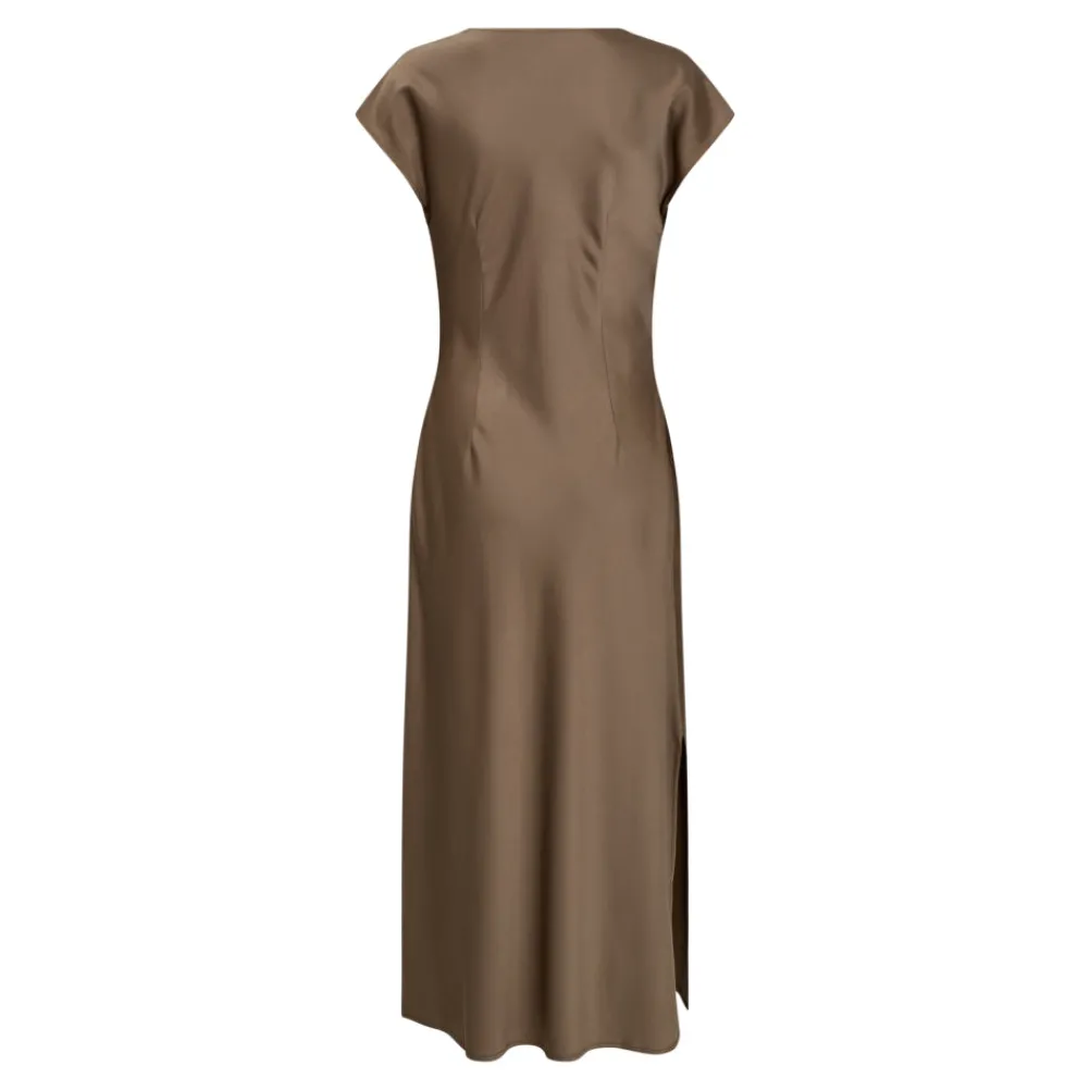 Elegant satinkjole fra Co’couture med rynkeeffekt ved udskæringen. Semitæt pasform. Kjolen falder flot. Perfekt til festlige begivenheder.