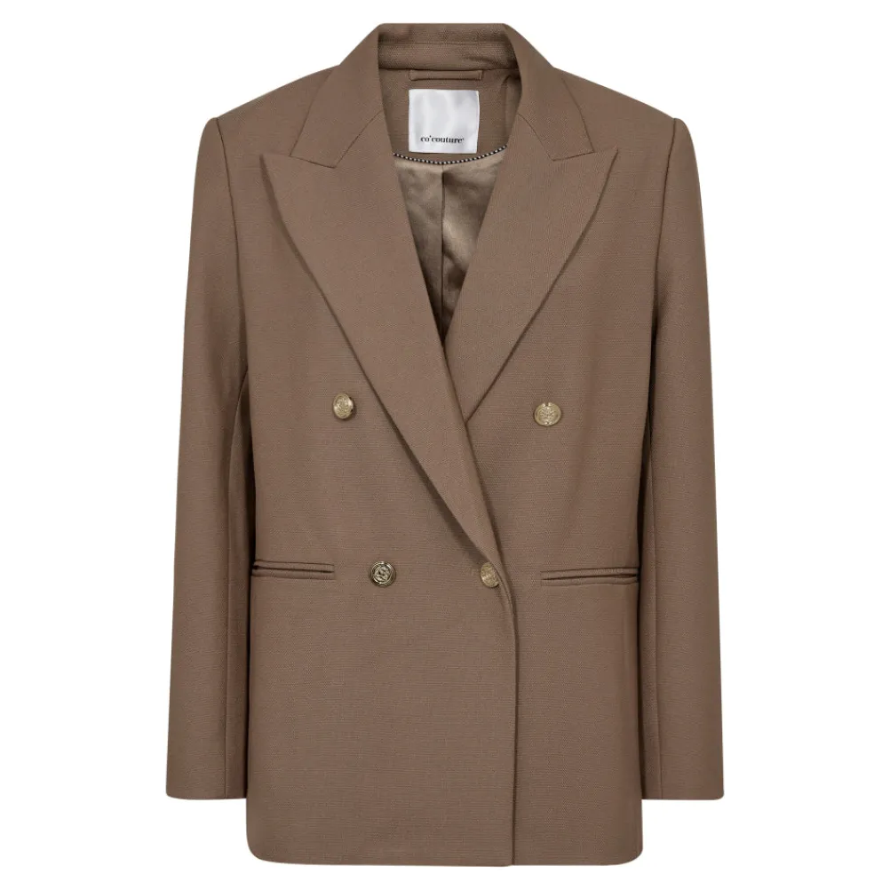 Smuk og elegant blazer med guldknapper fra Co’couture. Med brede revers, dobbelttradet lukning og lommer. Perfekt til både hverdag og fest.