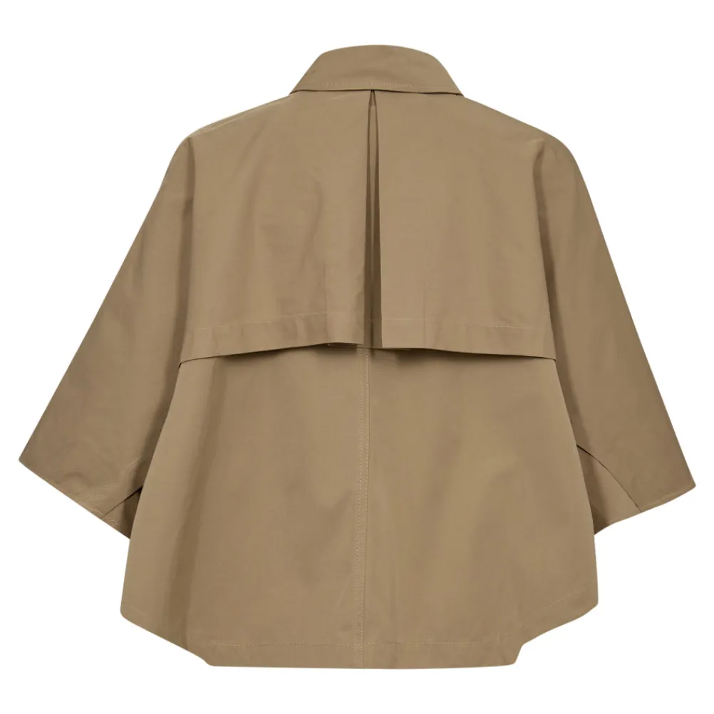 Elegant kort trenchcoat fra Co’couture med fine detaljer! Med klassisk krave, korte trekvartlange ærmer og kappedetalje.
