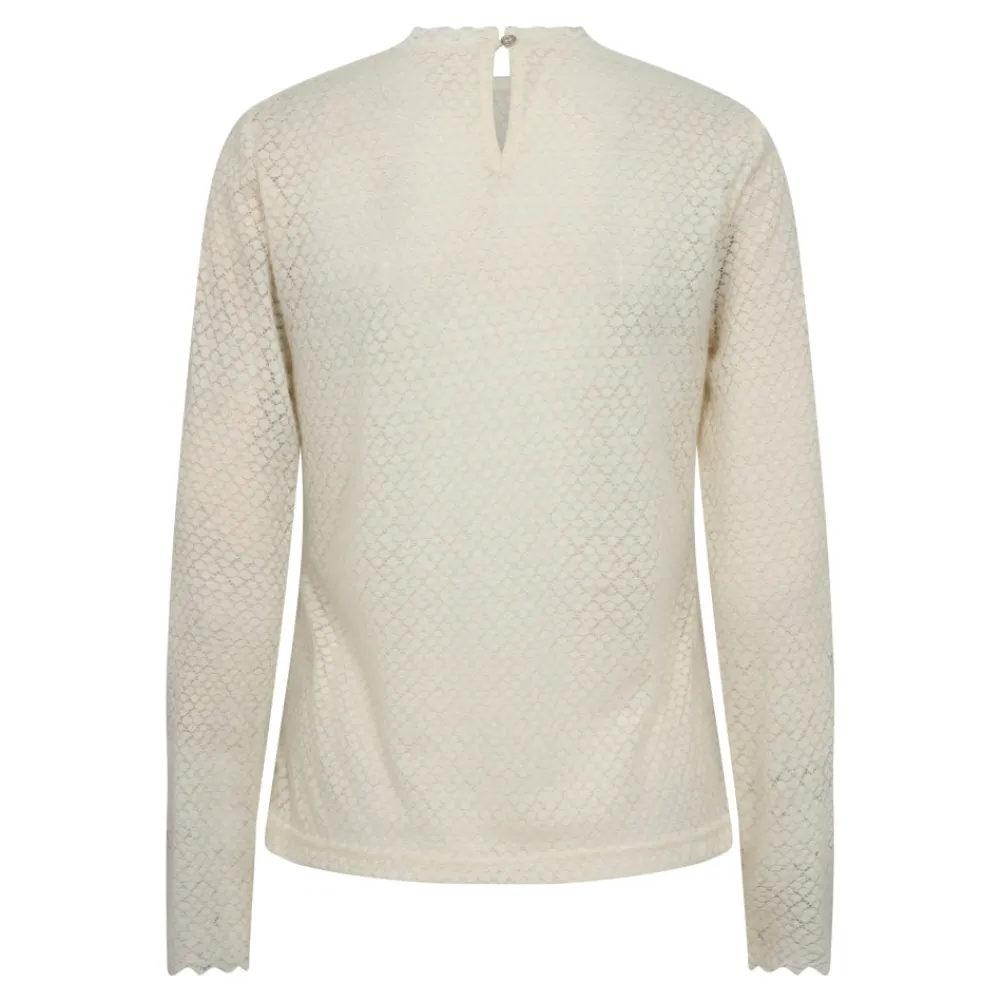 Elegant blondebluse fra Co’couture med rund hals og lange ærmer. Let gennemsigtig. Perfekt til både hverdag og fest.