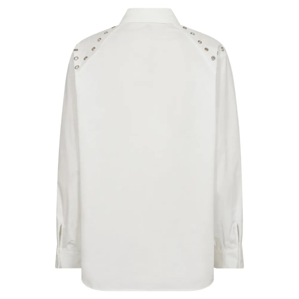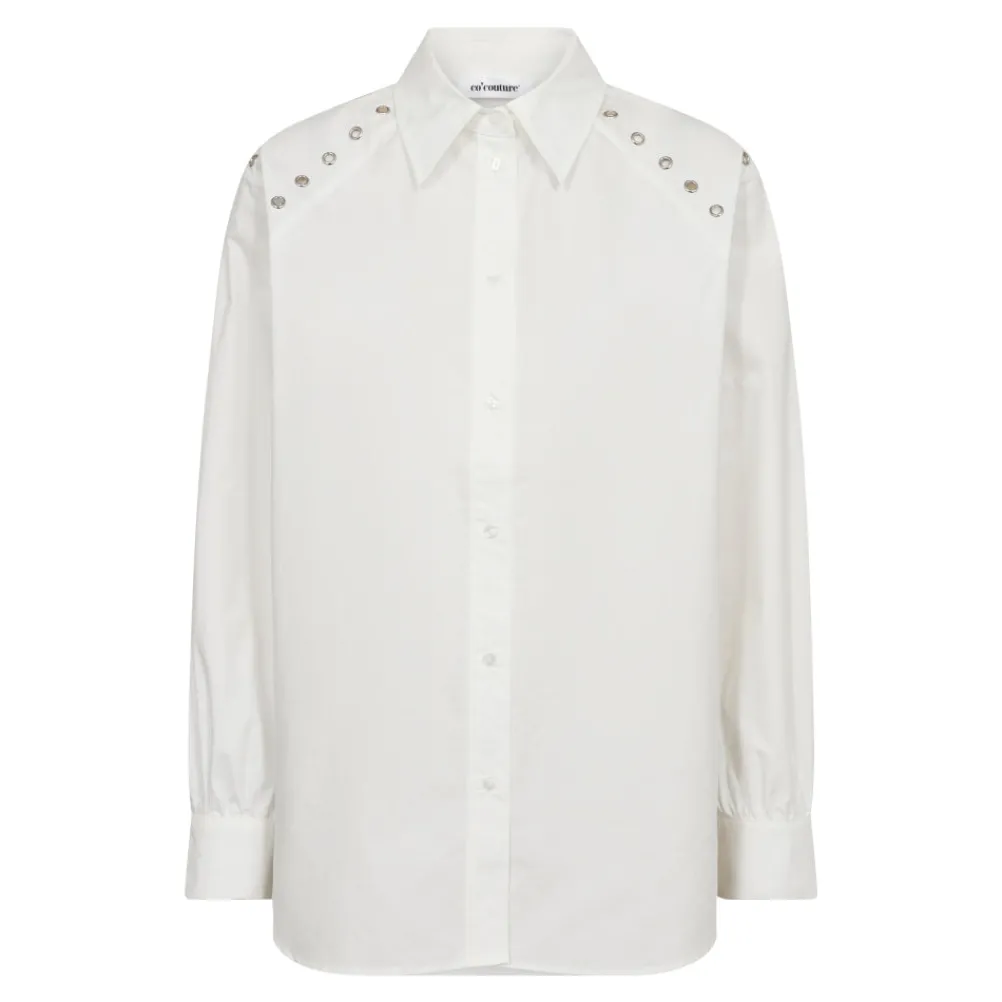 Flot løs hvid skjorte fra Co’couture med hulmønster ved skuldrene. Med skarp krave og manchetter.