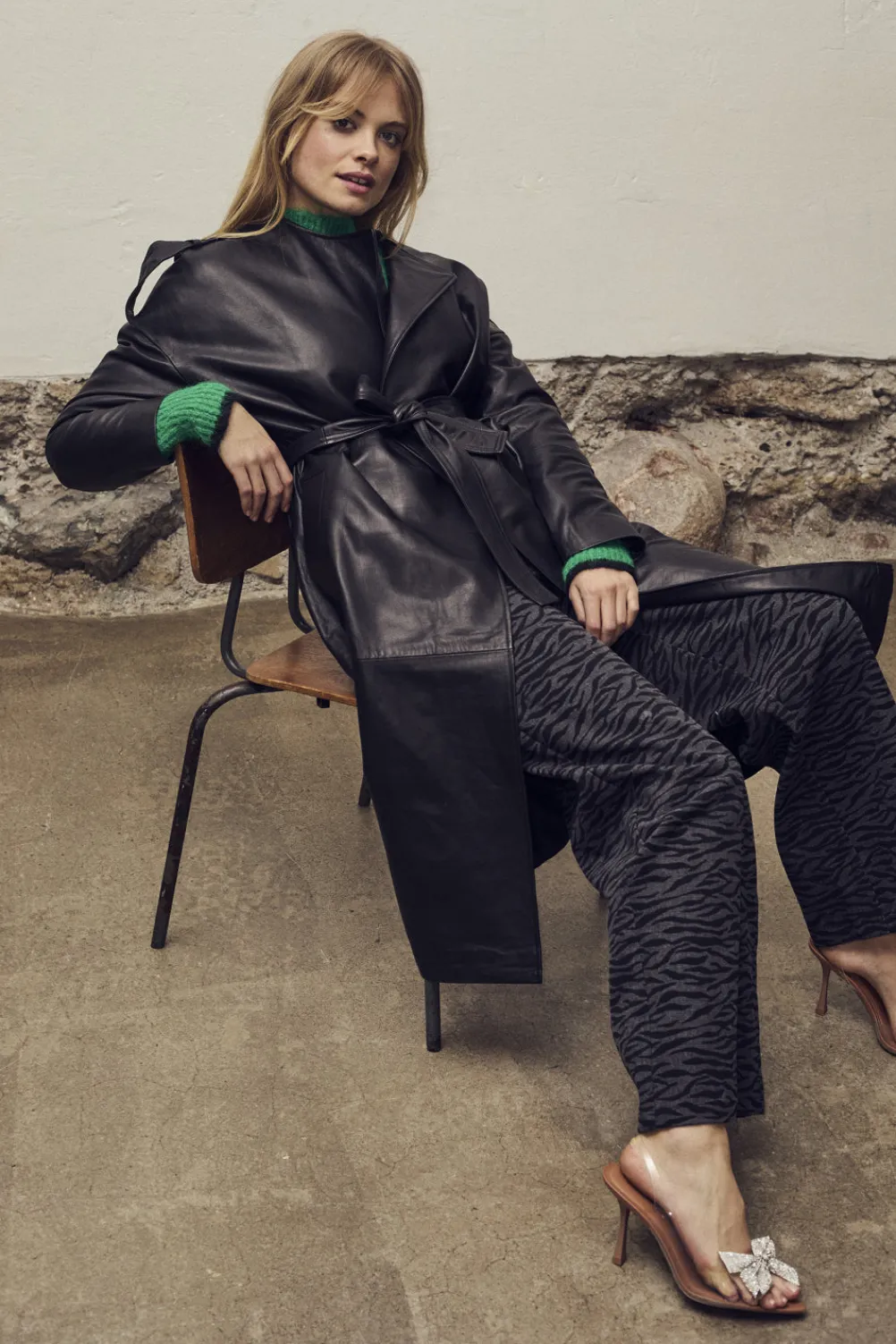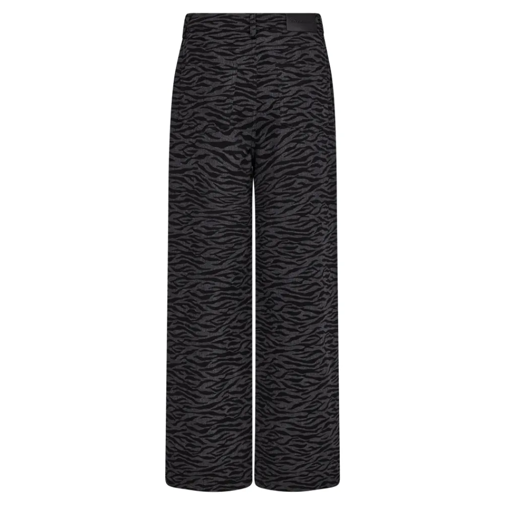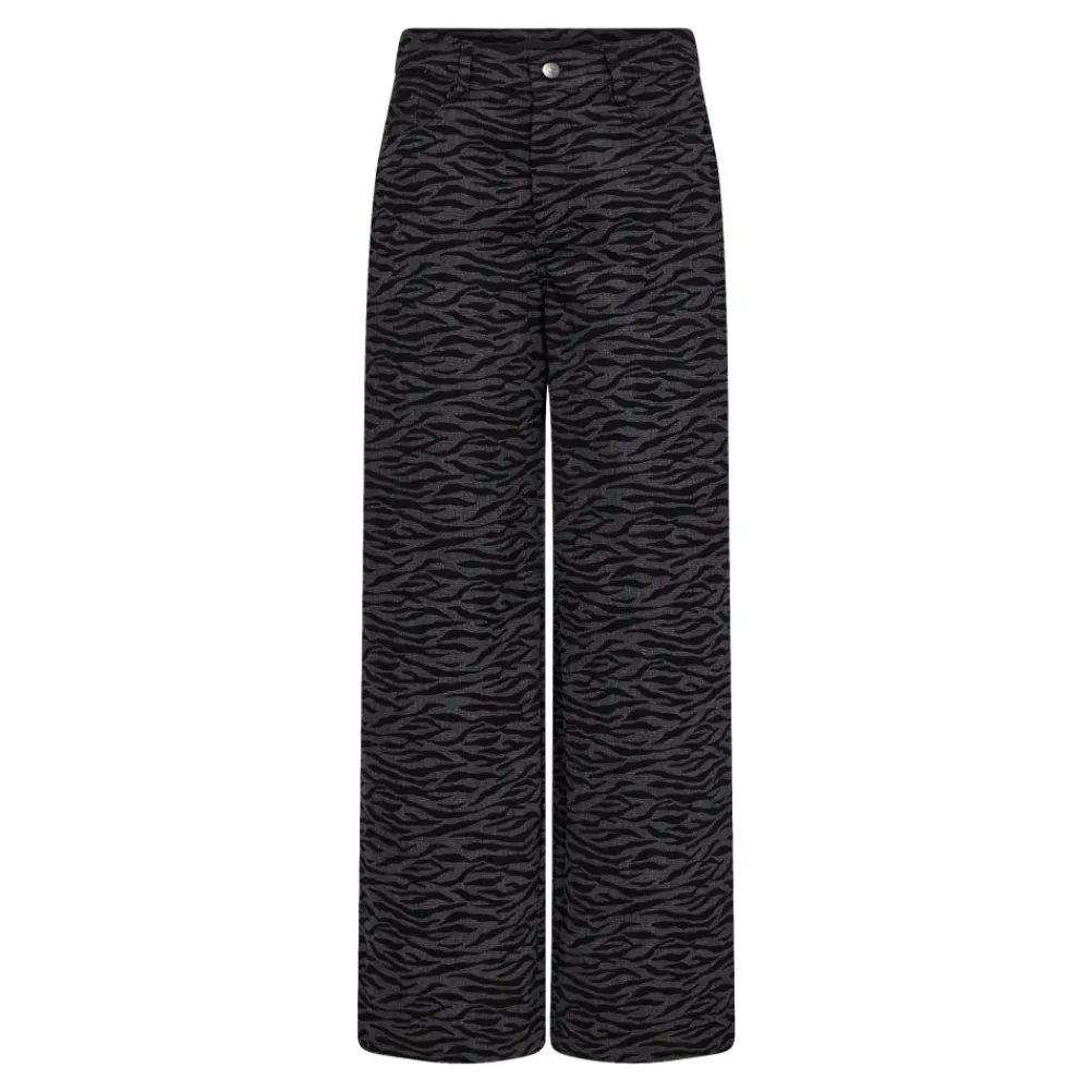 Super cool denimbukser med mørkt zebraprint fra Co’couture. Med brede ben, mellem/høj talje og behagelig pasform.