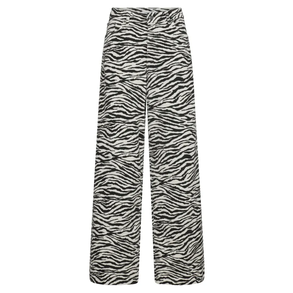 Super cool denimbukser med zebraprint fra Co’couture. Med brede ben, mellem/høj talje og behagelig pasform.