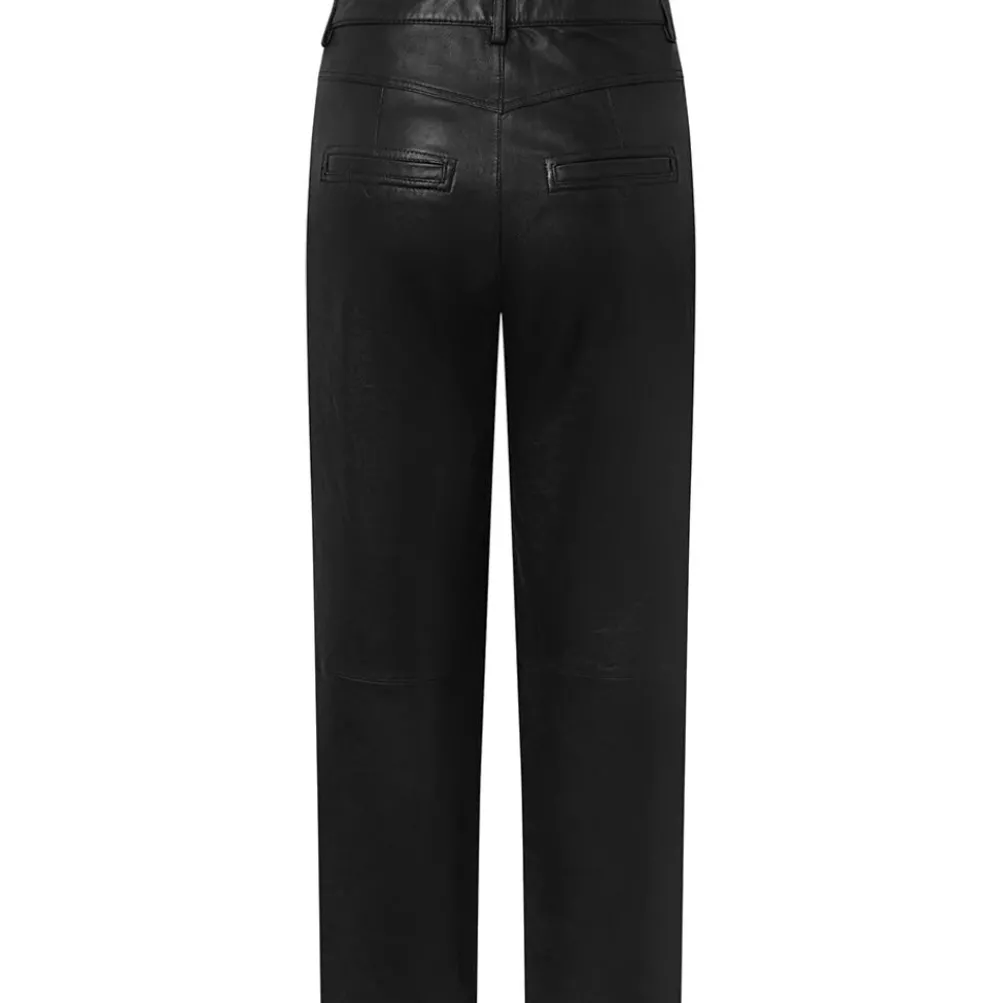 Lækre og bløde klassiske læderbukser fra Depeche. Med lige ben og 7/8 benlængde. Lavet i en slidstærk kvalitet. Skindbuksen har lommer på både front og bagside, og lukkes med knap og lynlås.