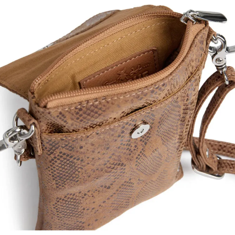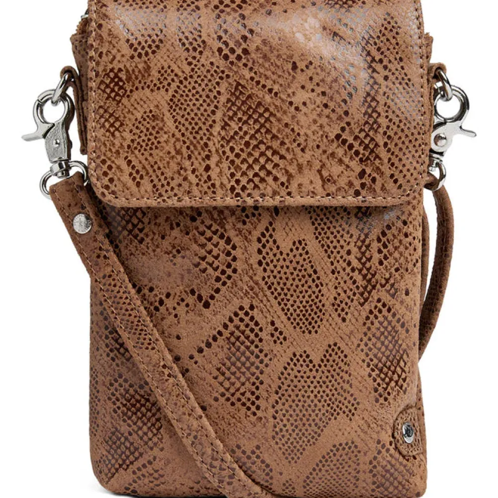 Flot mobiltaske fra Depeche lavet i blødt kalveskind med slangeprint. Lukkes med en magnetknap på fronten.