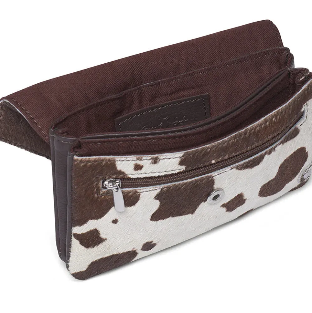 Flot pung lavet i blødt kalveskind med koprint. Pungen har plads til flere kreditkort og har et separat rum til kontanter eller kvitteringer. Den lukkes med en knap på fronten.