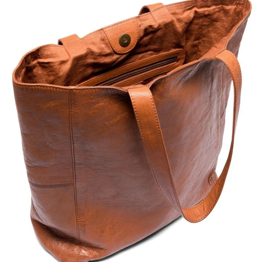 Farve: Cognac / Materiale: 100 % kalveskind / H: 37 x B: 30 x D: 11 cm.