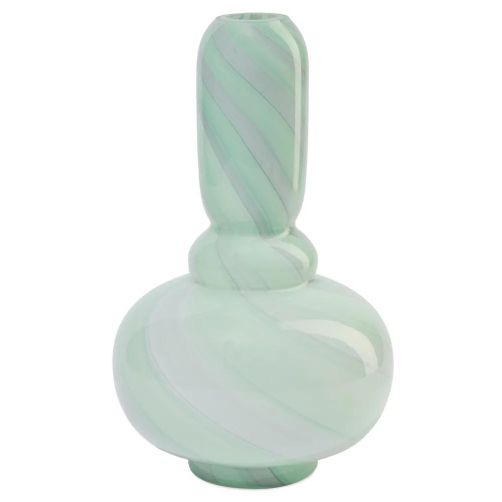 Smuk håndlavet glasvase med flotte farver. Hver vase er håndlavet og derfor unik i farve og striber.