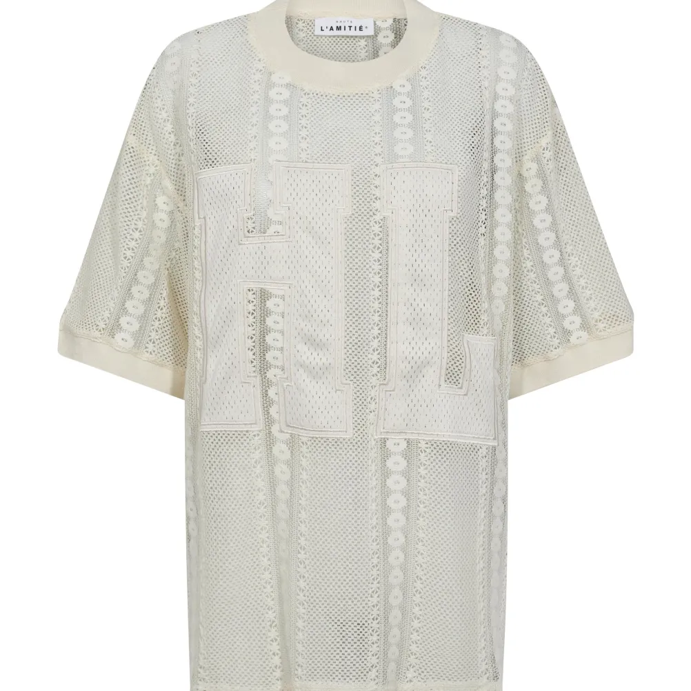 Cool løs blonde/net-t-shirt fra Haute L’amitié med logo.