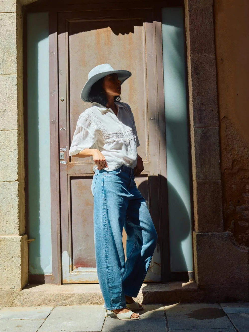 Cool løse jeans fra Heyanno designet med lav/middelhøj talje med indsnit ved knæene, der bliver smallere ved anklerne. Justerbare i taljen med ekstra knapper.