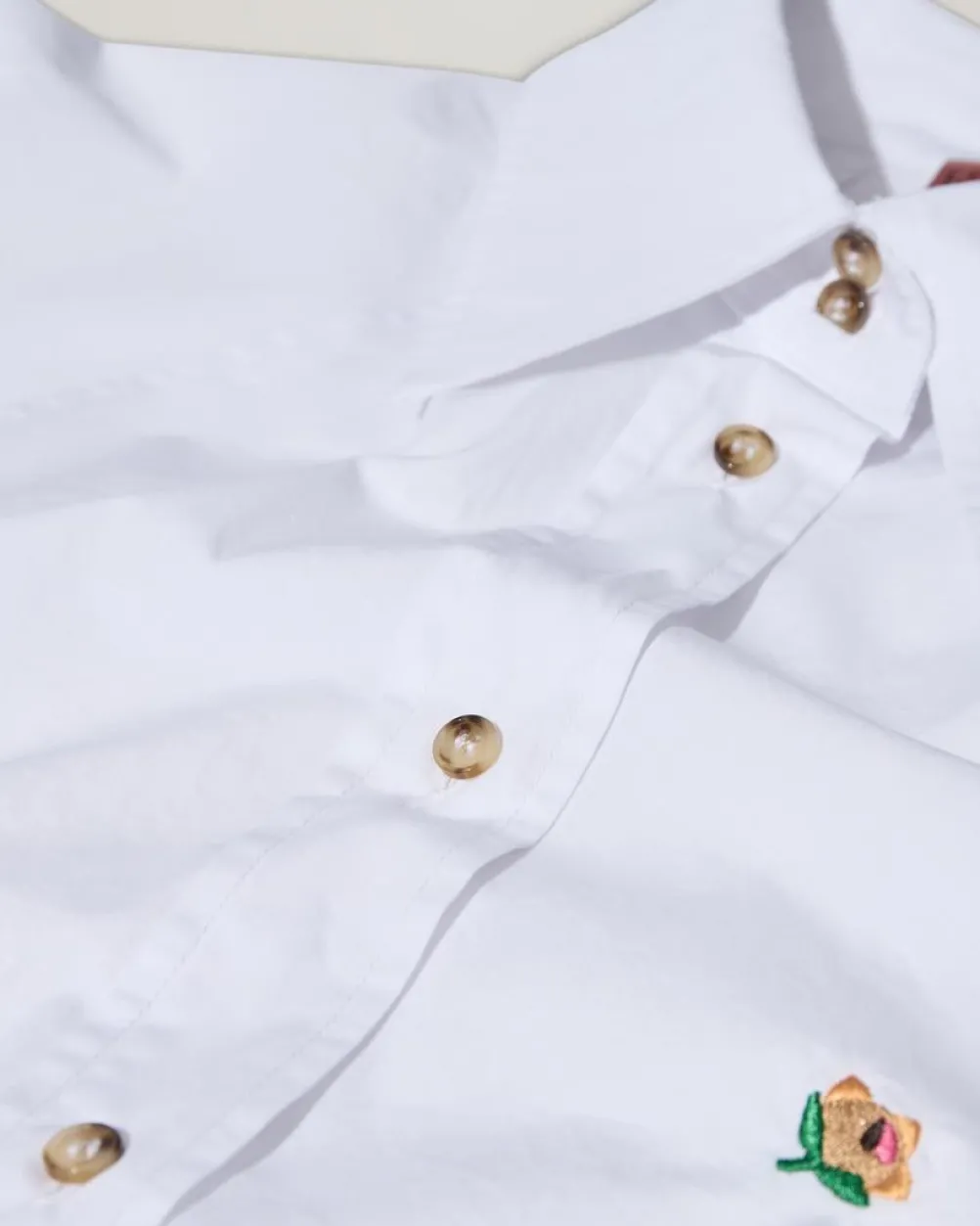 Flot klassisk skjorte fra Heyanno med fin broderet rose på brystet. Designet i en løs pasform i kraftig bomuld med skarp krave.