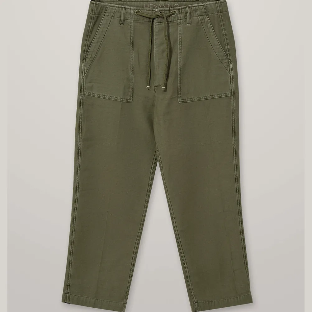 Cool vintage-vaskede bukser fra Heyanno med lige ben og lav/middelhøj talje. Stoffet er vendt på vrangen for ekstra blødhed og er designet med påsyede lommer og justerbar snøre i linningen.
