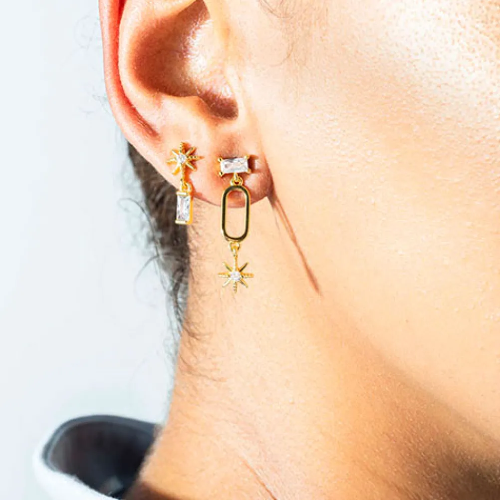 Super fine asymetriske øreringe fra House Of Vincent med fine stjerne detaljer og flotte klare Swarovski krystaller.