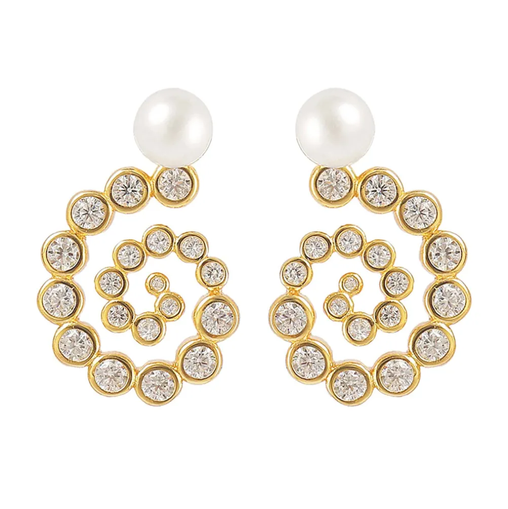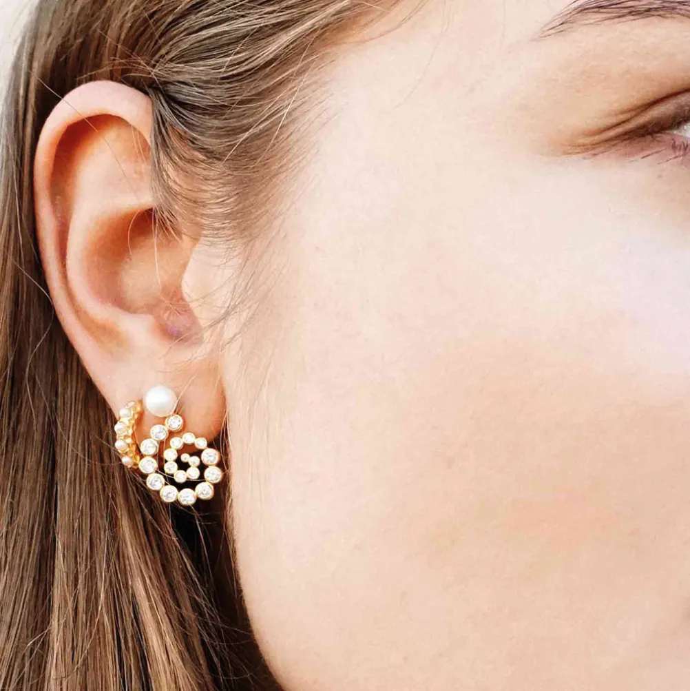 Smukke øreringe med hvid ferskvandsperle og hvid CZ.