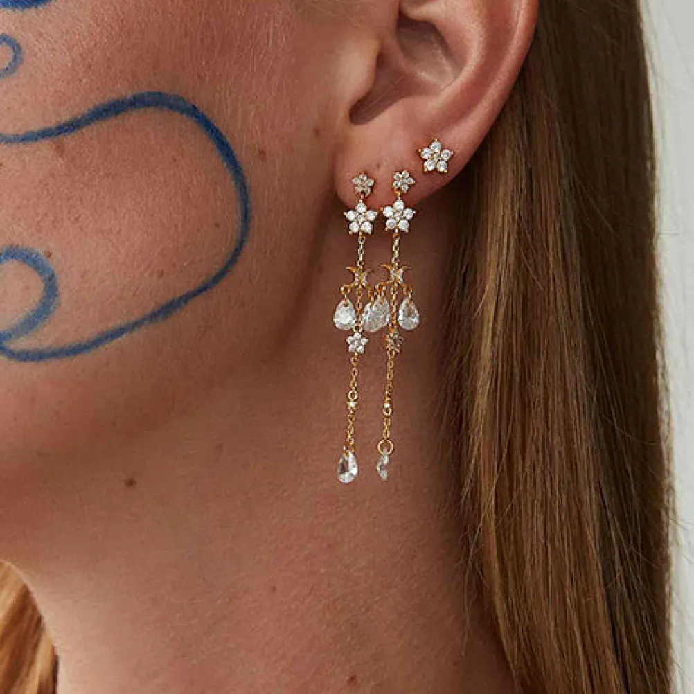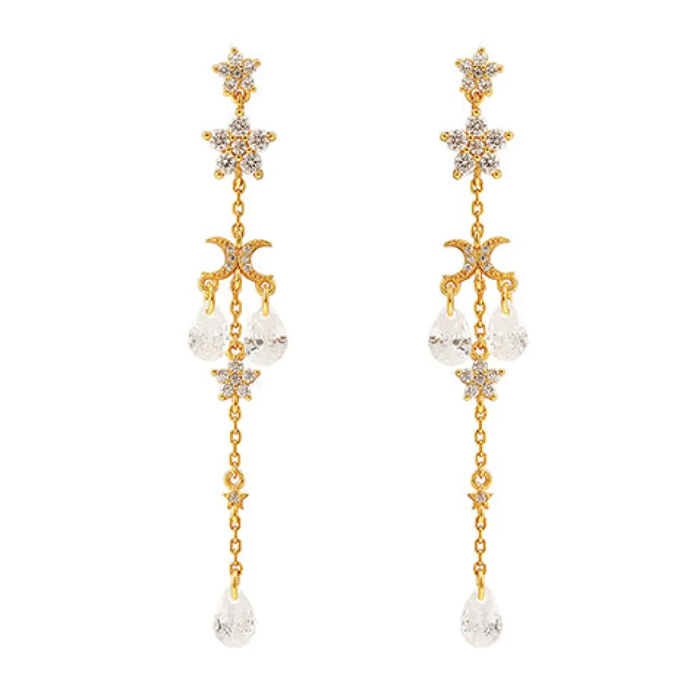 Smukke lange øreringe med stjerne og måne vedhæng.