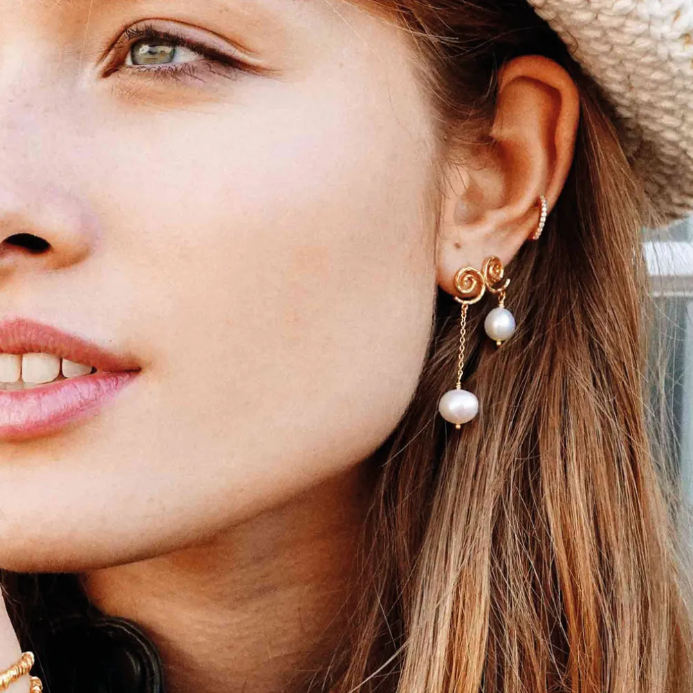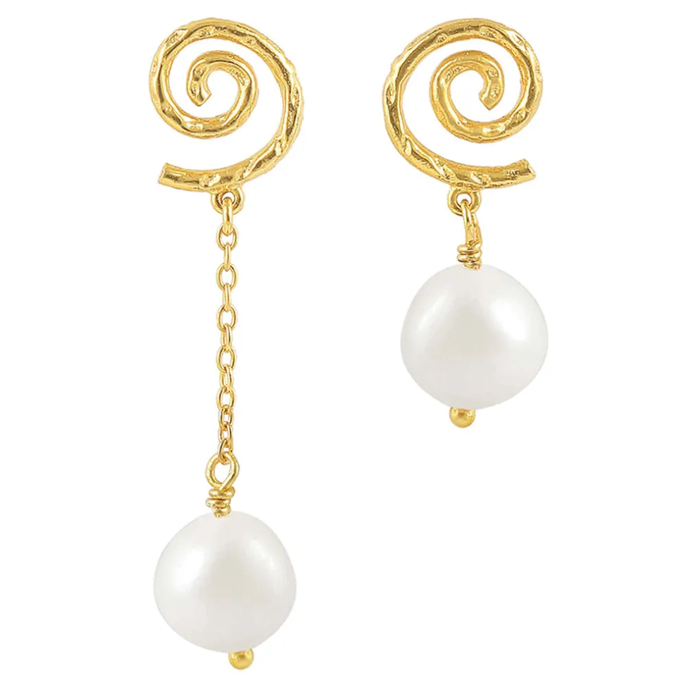 Smukke twirl øreringe med hvide ferskvandsperler.