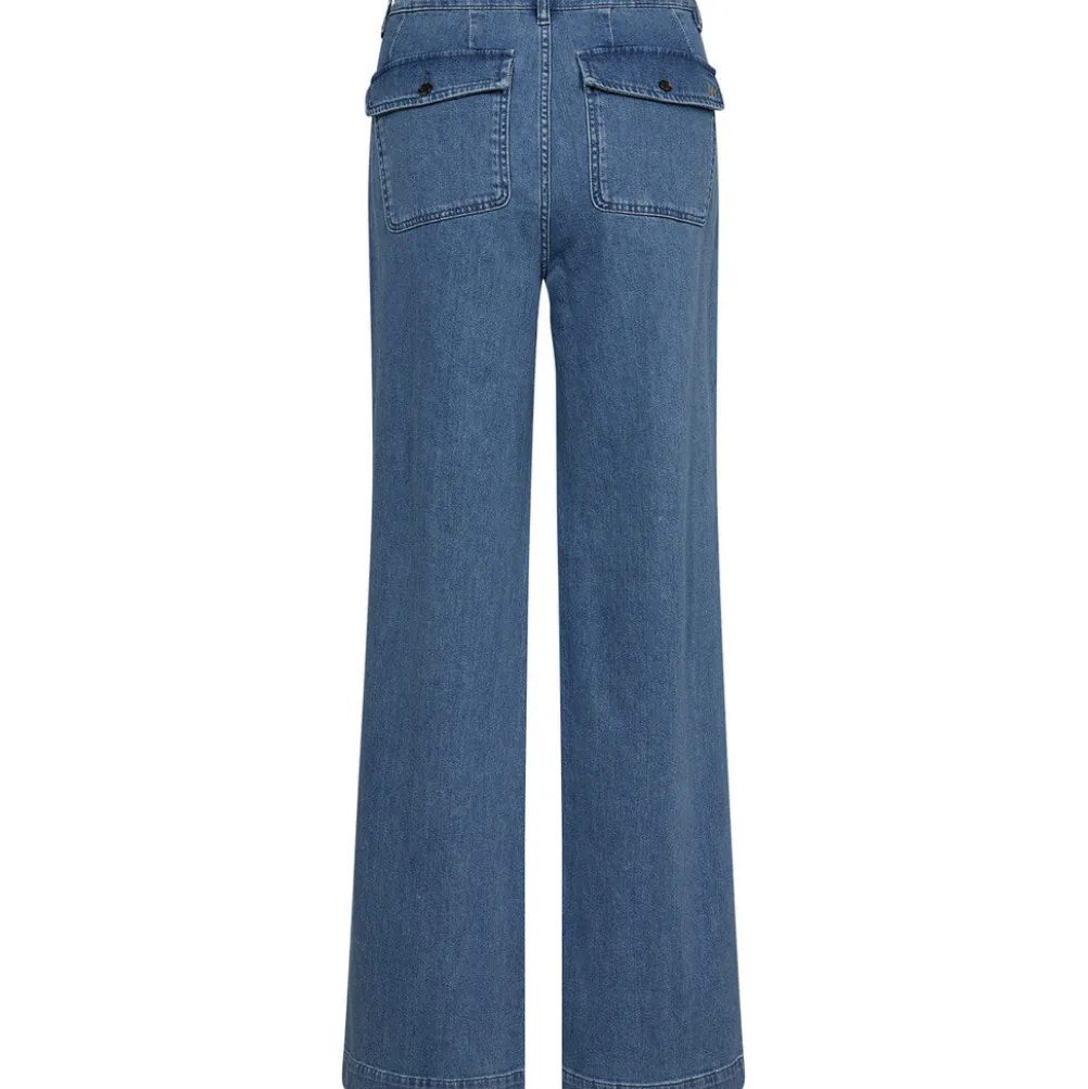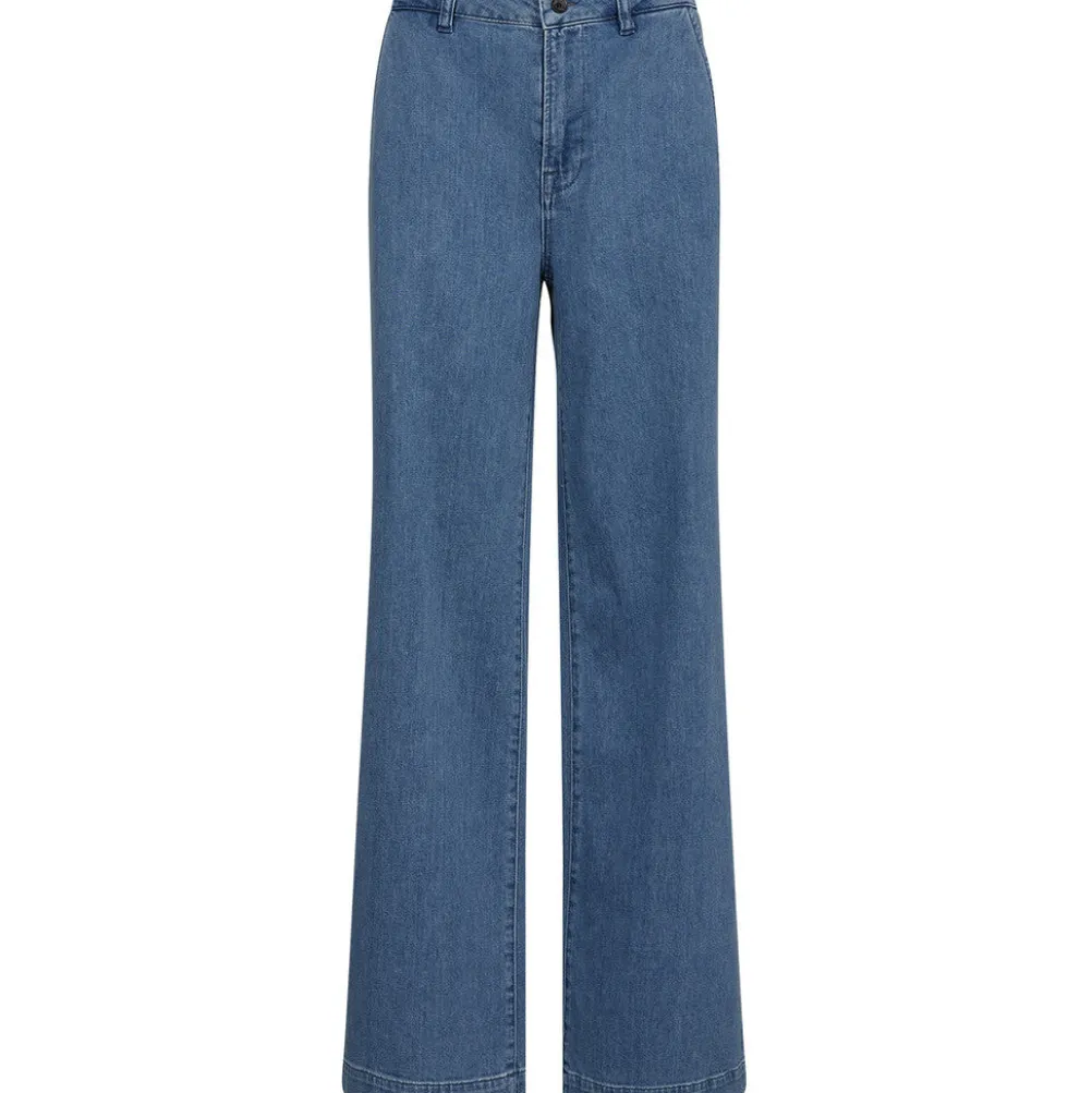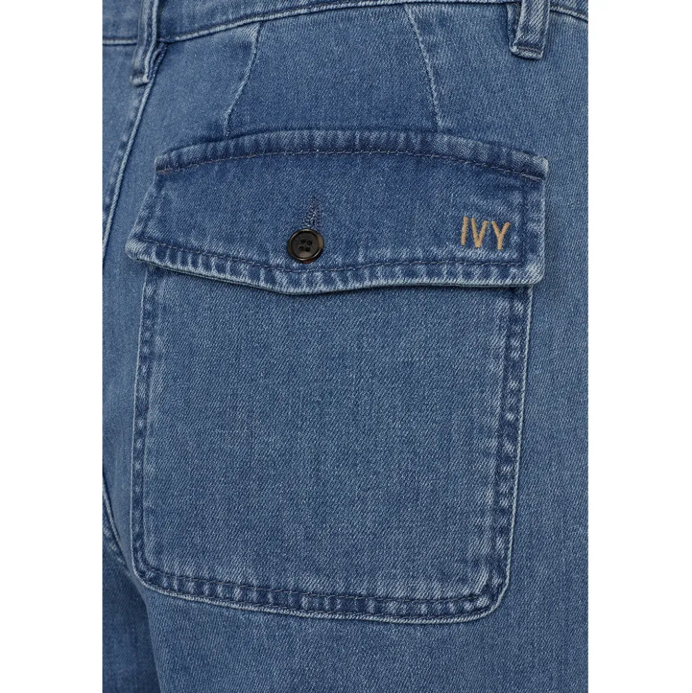 Cool denimblå jeans fra Ivy Copenhagen i bomuldsblanding med lige ben, knap og lynlåslukning, bæltestropper og lommer bagpå. Med høj talje.