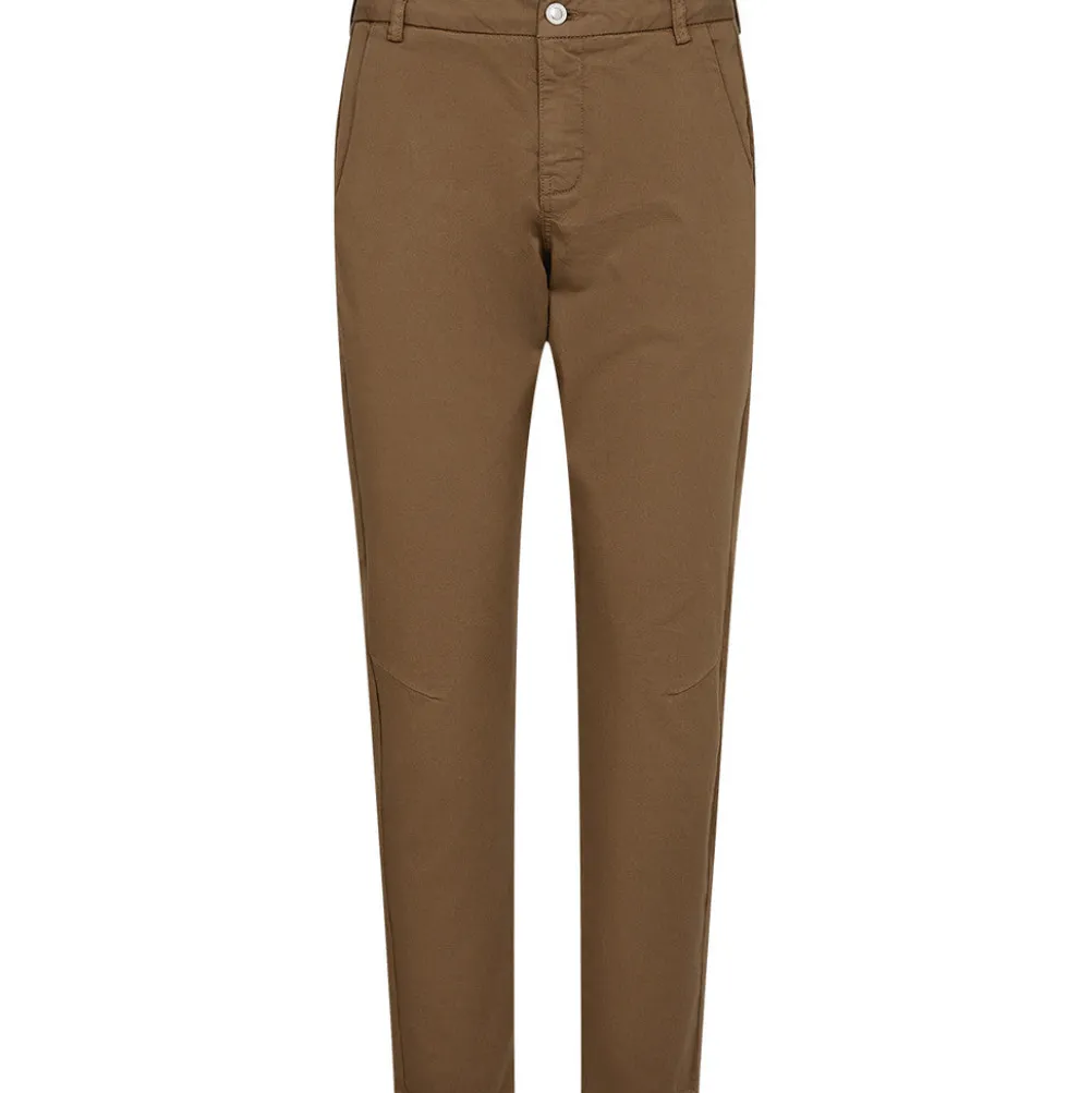 Fine chino bukser fra Ivy Copenhagen i fin brun farve med fine detaljer. Designet i en slim fit pasform med mellemhøj talje. Ankellange med franske sidelommer. Medium stretch.