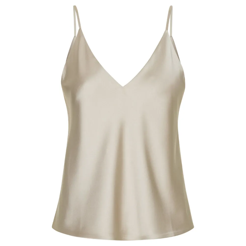 Smuk satintop fra Karmamia med v-udskæring og tynde stropper. Perfekt til festlige begivenheder.