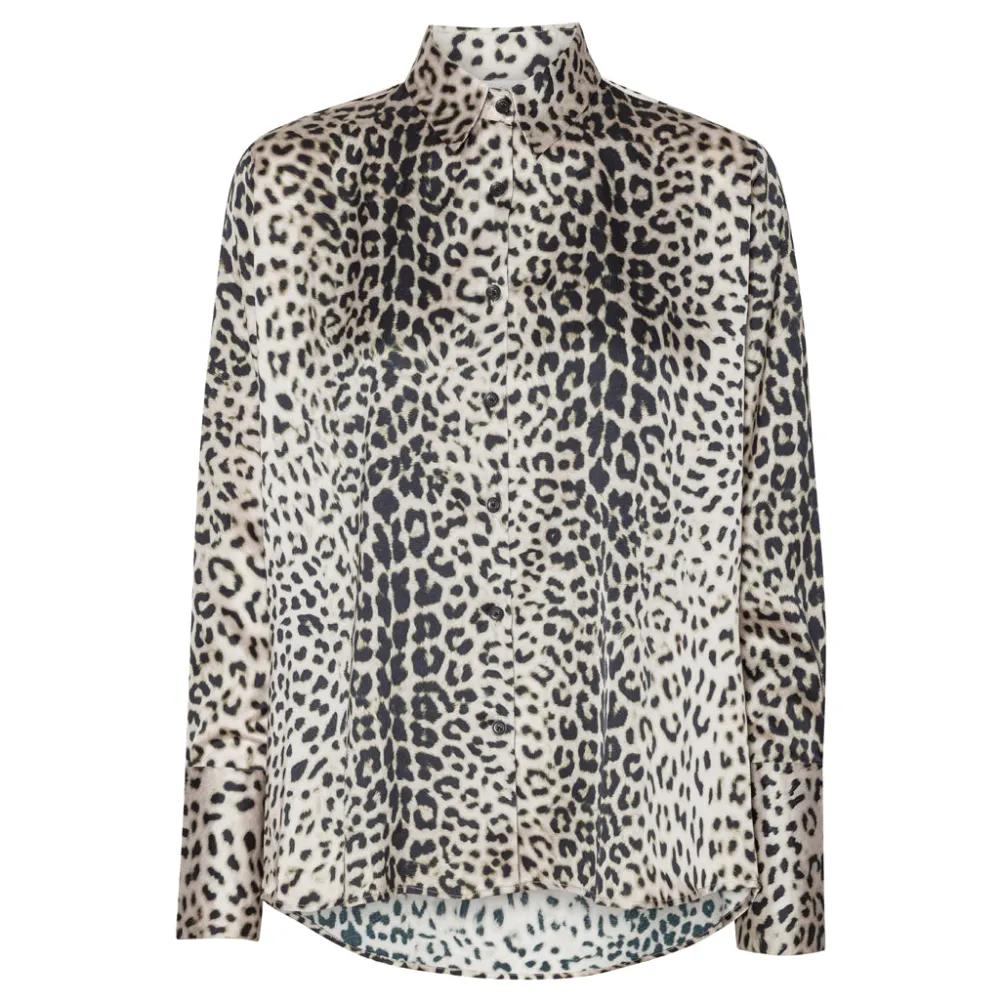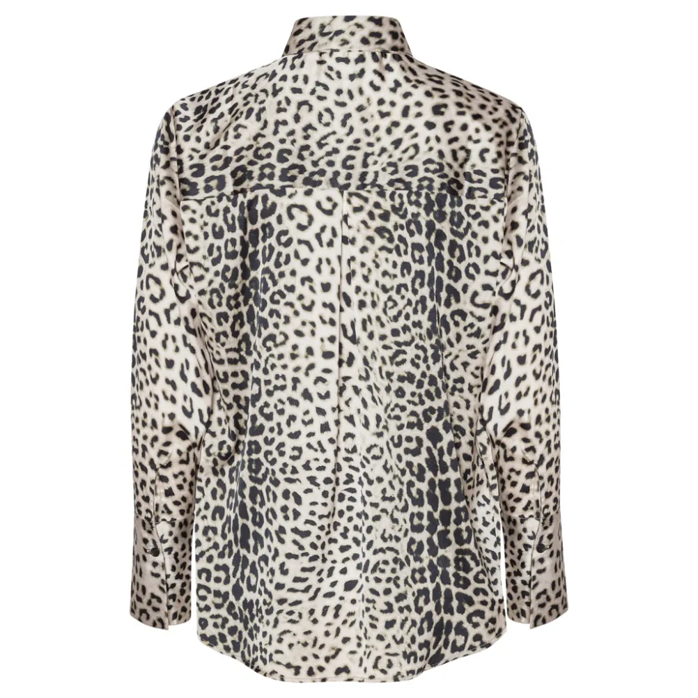 Super smuk og elegant satinskjorte fra Karmamia med det fineste leopardprint. Med klassisk krave og manchetter. Kan bruges både til hverdag og fest.