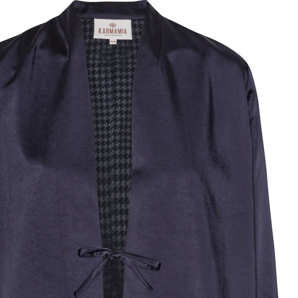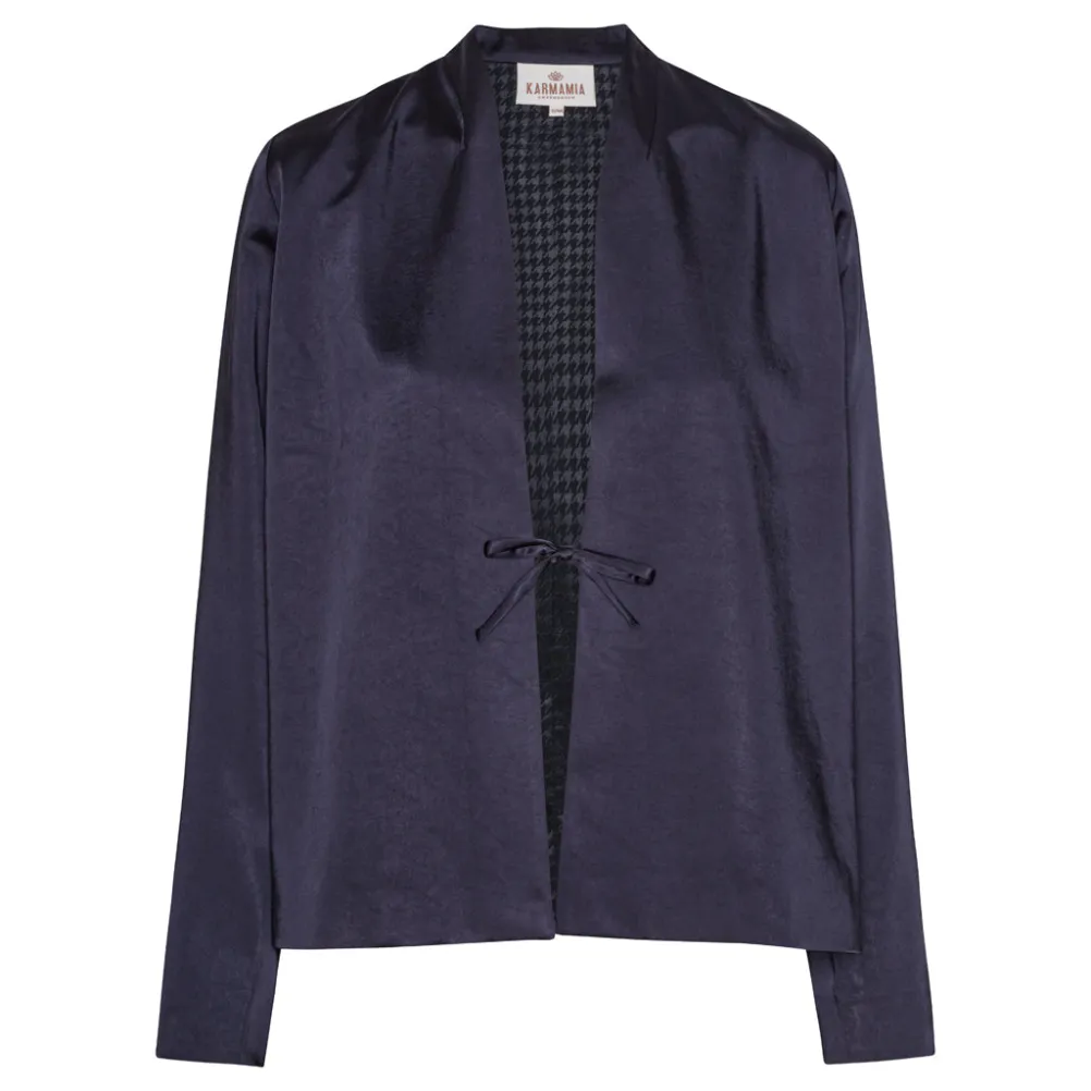Smuk satinskjorte fra Karmamia med fin sløjfelukning. Perfekt både til hverdag og fest.