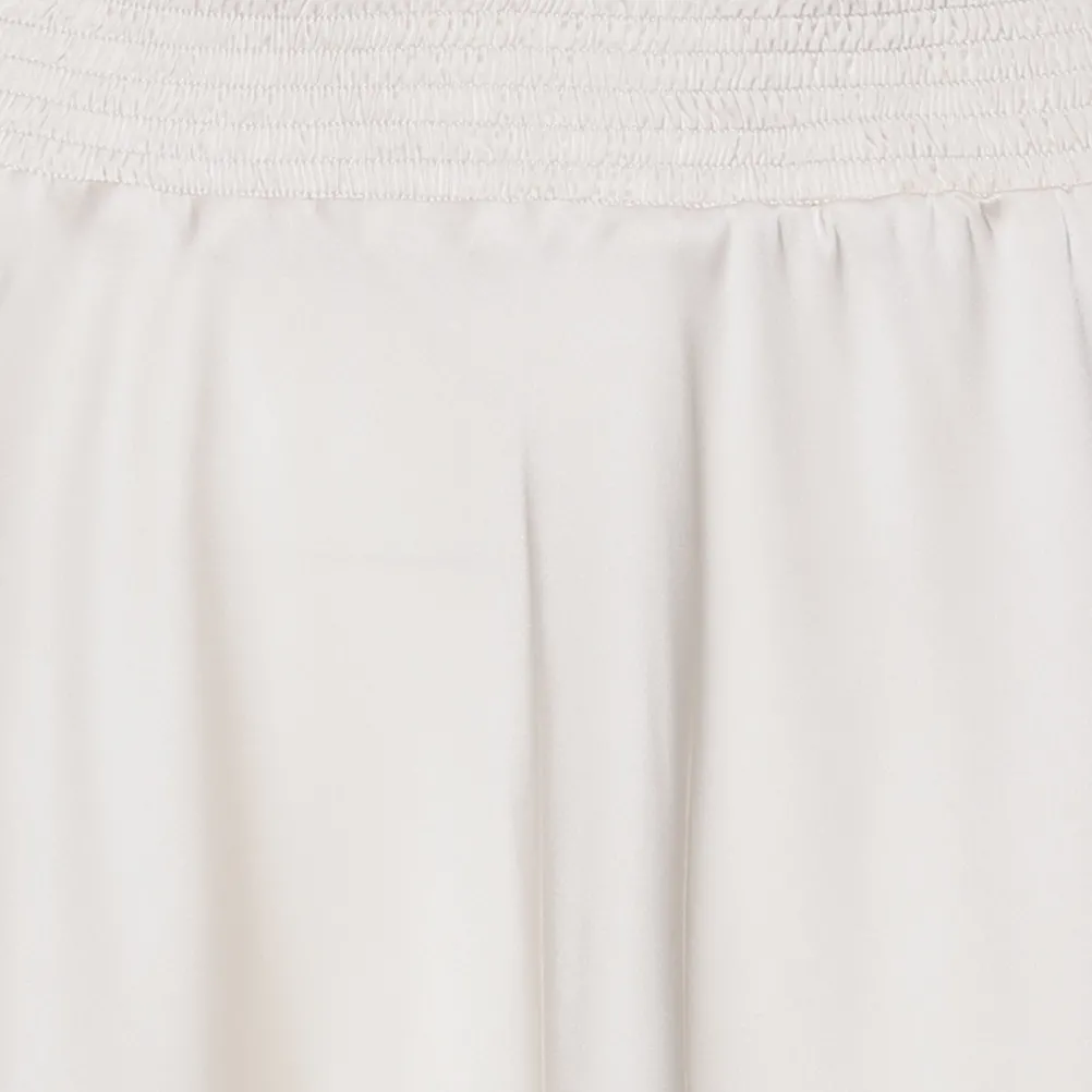 Super smuk lys cremefarvet satinnederdel fra Karmamia. Med elastik i taljen. Perfekt til både hverdag og fest.